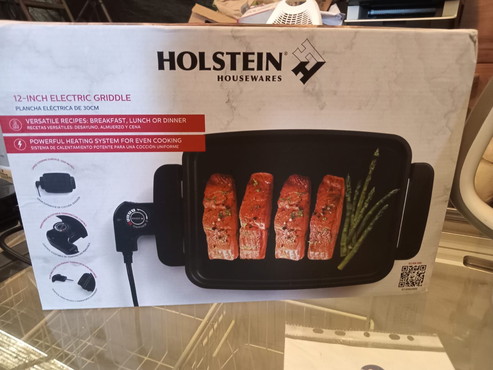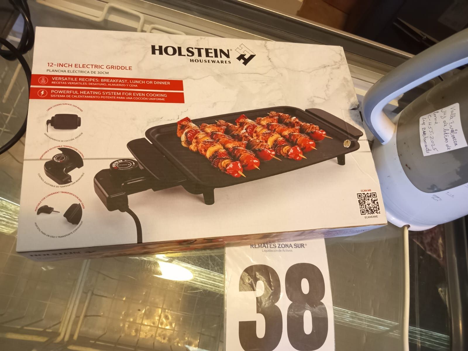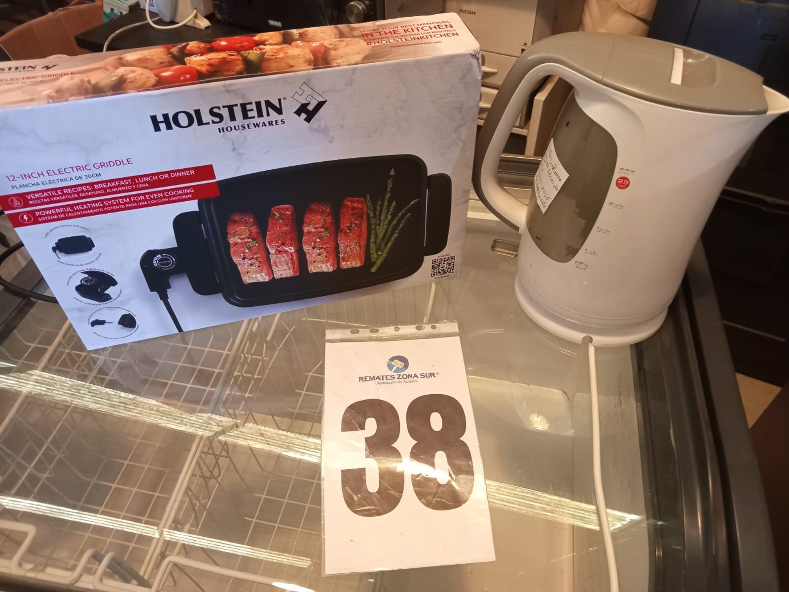 LOTE 38: Hervidor Blanco Bigfamilyt. Parrilla eléctrica Negra Holsteins. (Retiro En Sede Rzs)