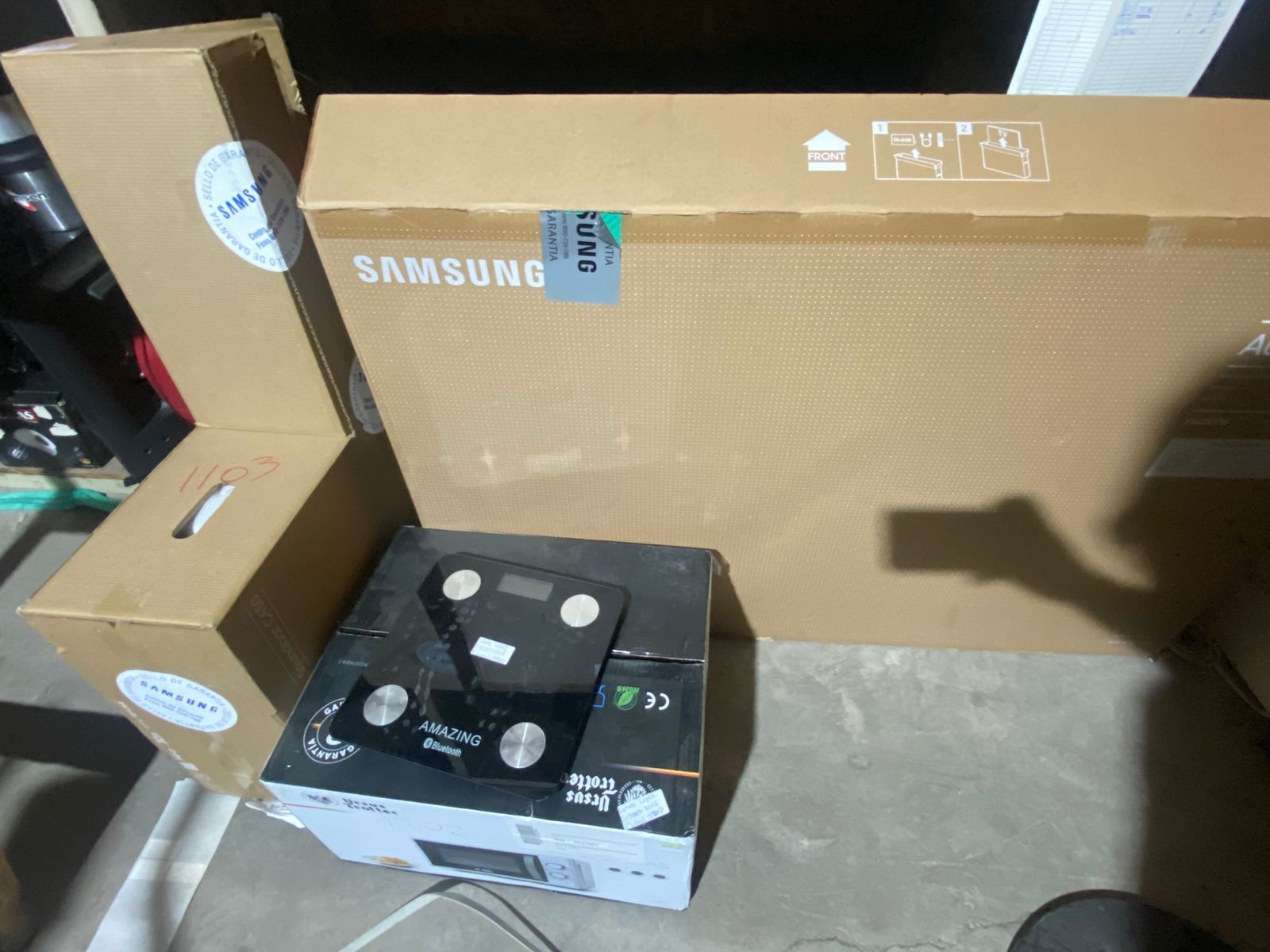 LOTE 58: Led 50" Samsung. Soundbar Samsung. Microondas Ursus Trotter. Hervidor eléctrico black & decker. Balanza inteligente bluetooth. (Retiro En Stgo. de Chile)