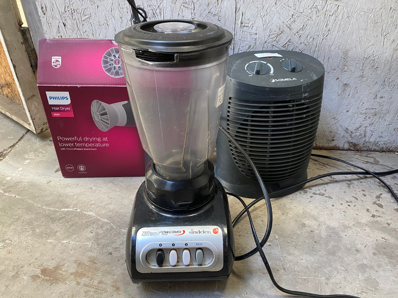 LOTE 51: Secador de pelo Phillips. Calefactor eléctrico negro Somela. Juguera negra Sindelen. (Retiro En Stgo. de Chile) SUSPENDIDO