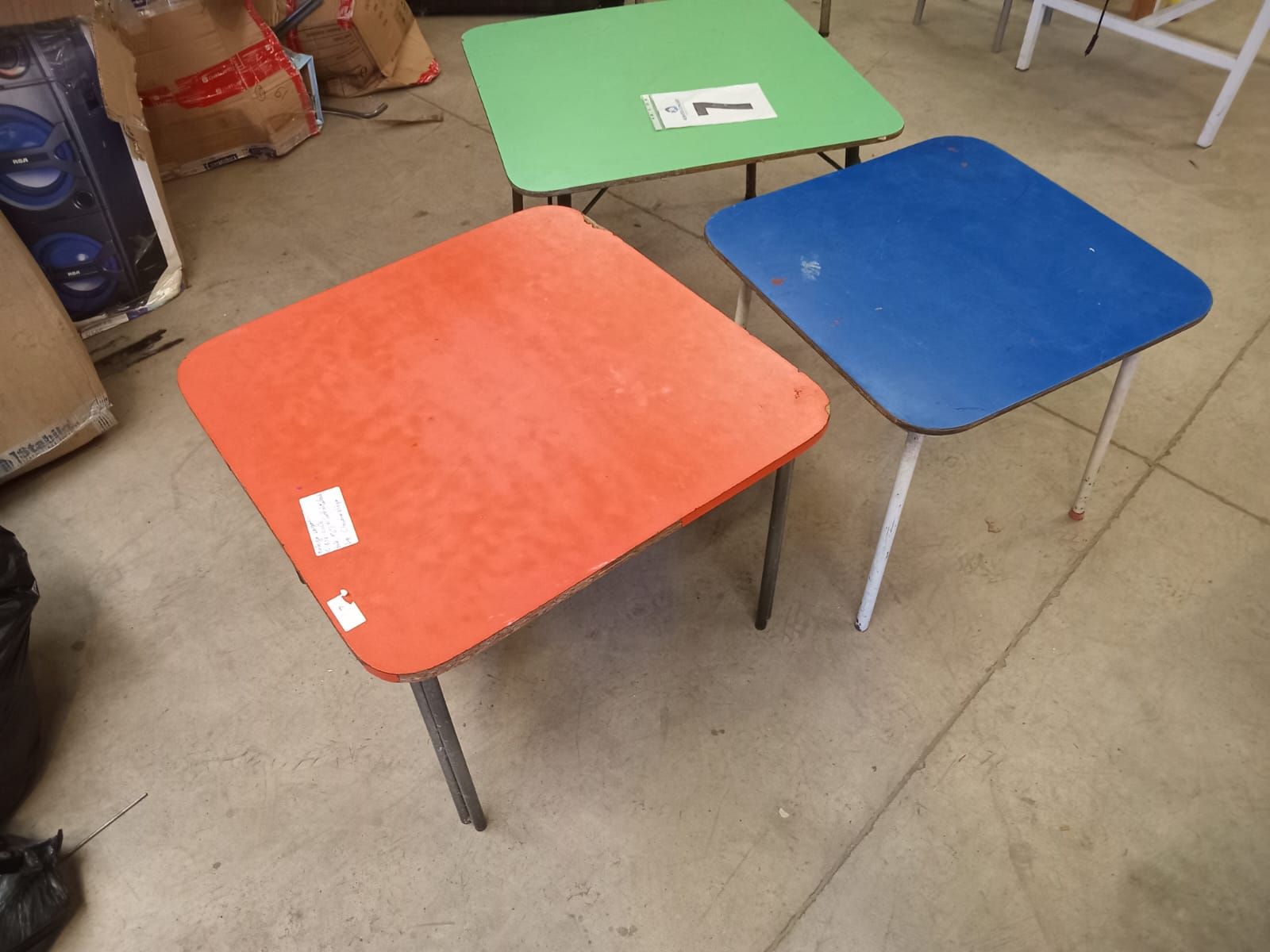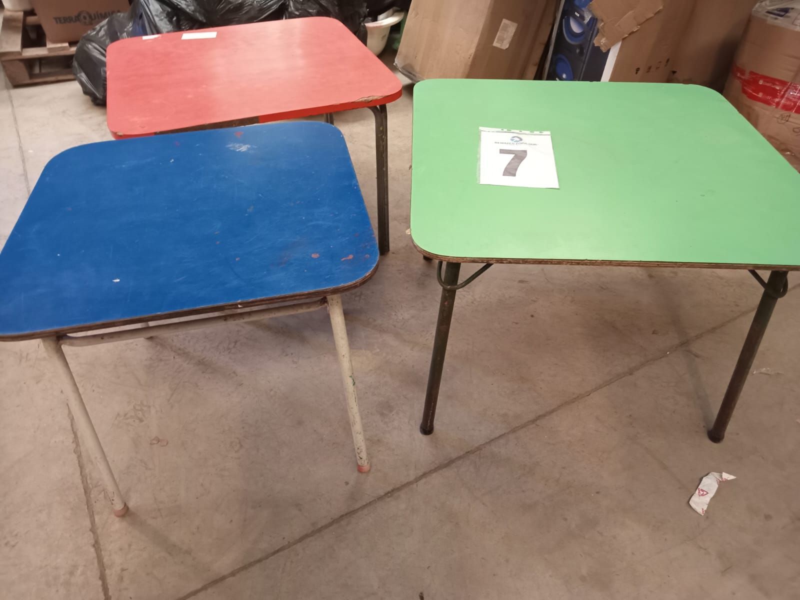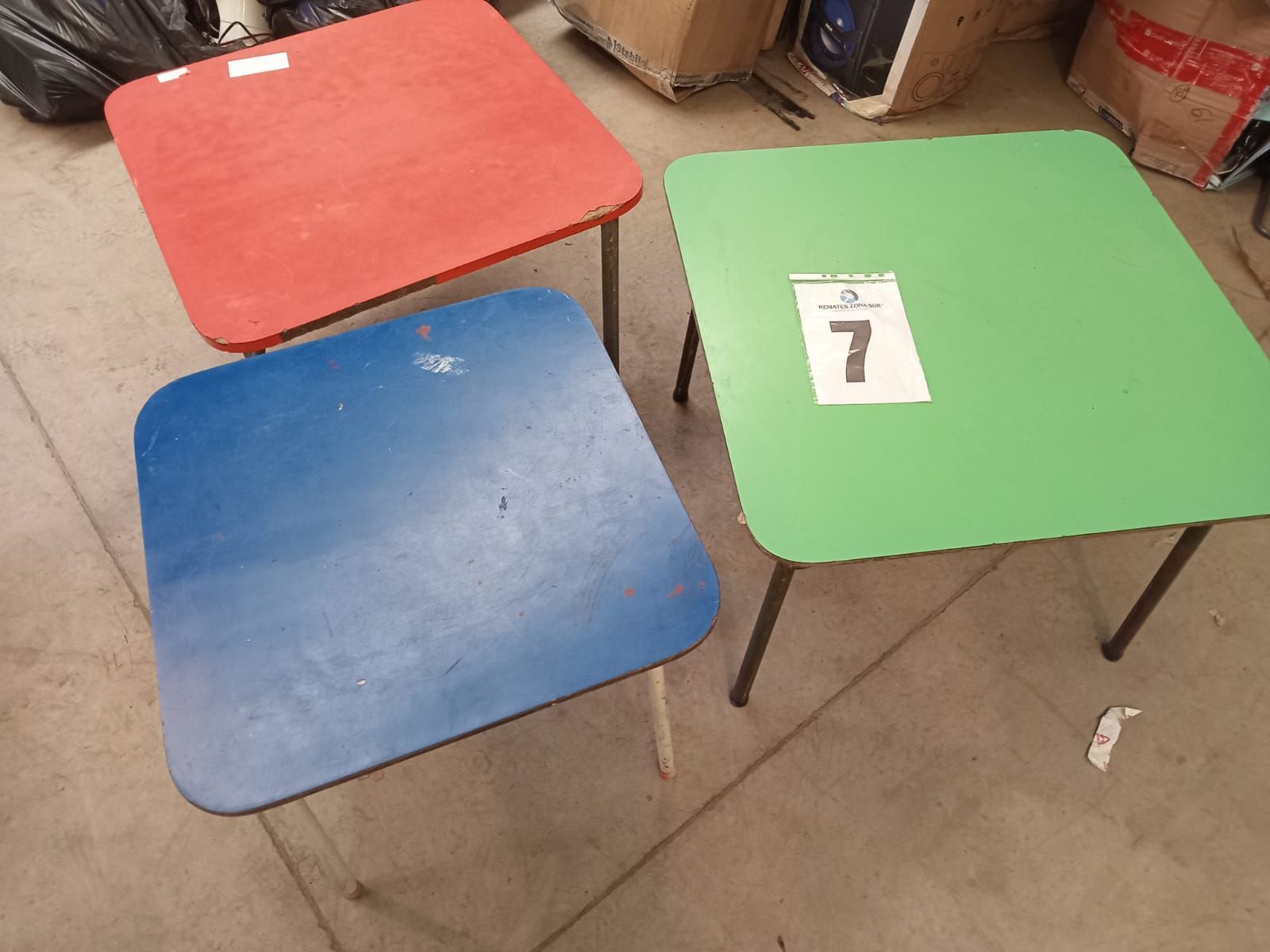 03 mesas (azul, rojo, verde).