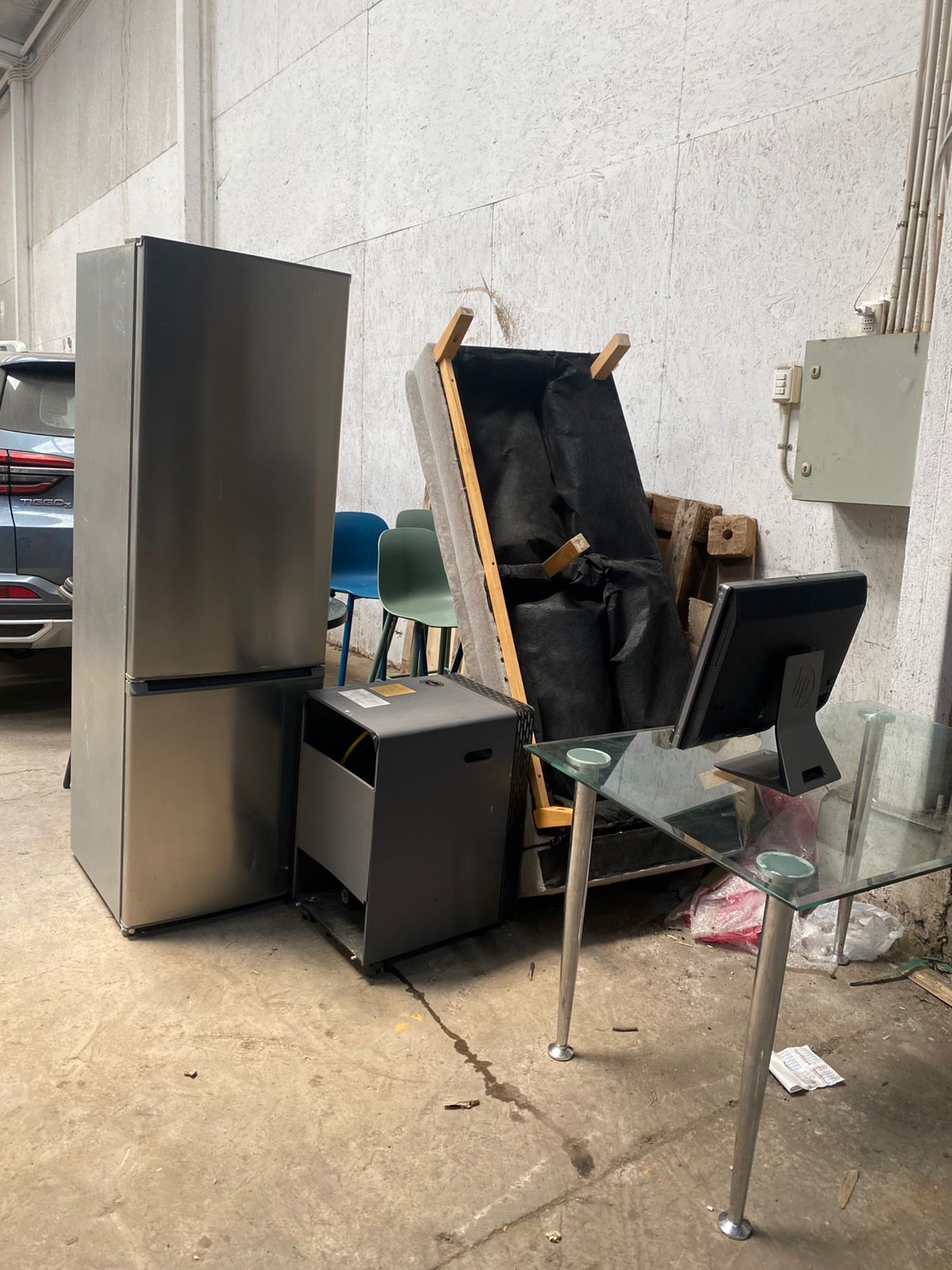 LOTE 50: Mesa de comedor vidrio rectangular. Sofá cama home republic bed sky gris diseño de tela liso. Extractor de jugo lento prensa en frio Sindelen exl-200r. Estufa gas sumoheat fh-4200. Combo juego de balcón 2 personas 1 mesa y dos sillas. Refrigerador Daewood rfd-3665. Pc hp proone 600 g1 hp. Sillas altas de comedor. Celular marca vivo/v2139. (Retiro En Stgo. de Chile) SUSPENDIDO