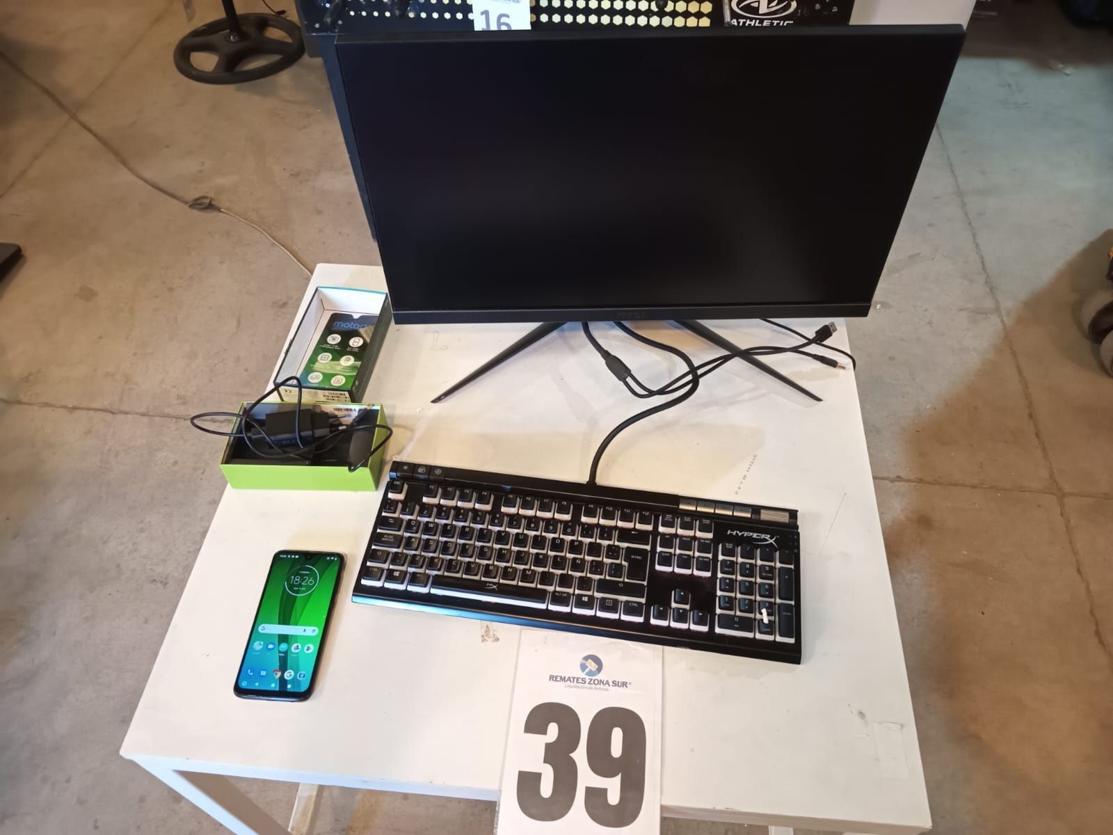 Celular Motorola. Teclado del computador Hyperx. Monitor Msi.