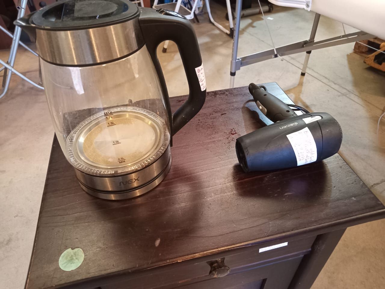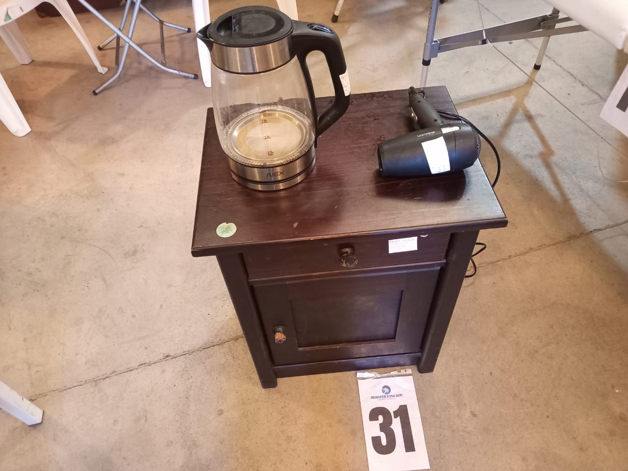 LOTE 31: Un Secador de pelo Siegen. Un Hervidor de agua. Un Velador de cama. (Retiro En Sede Rzs)