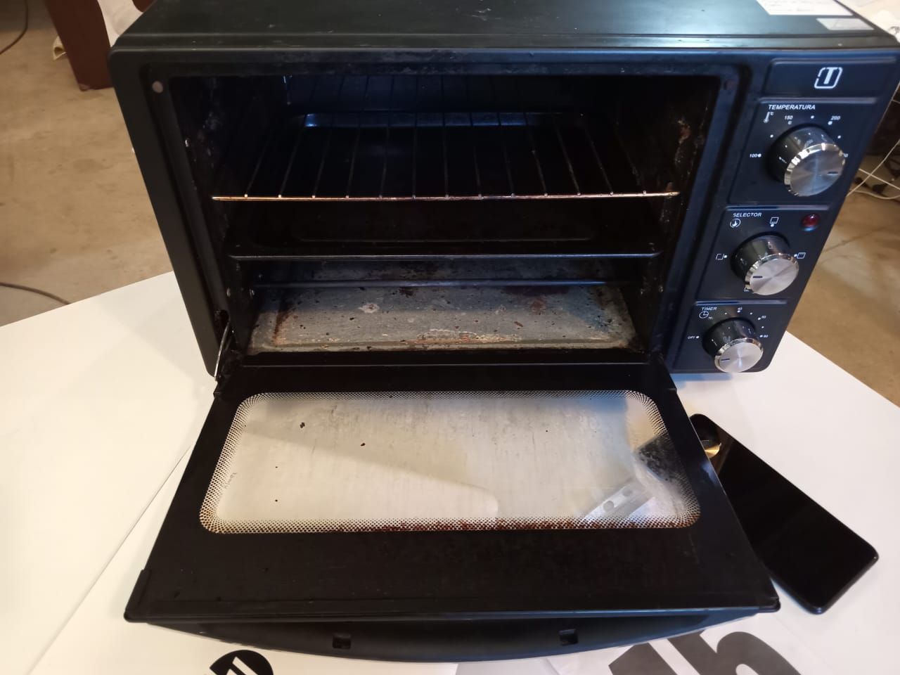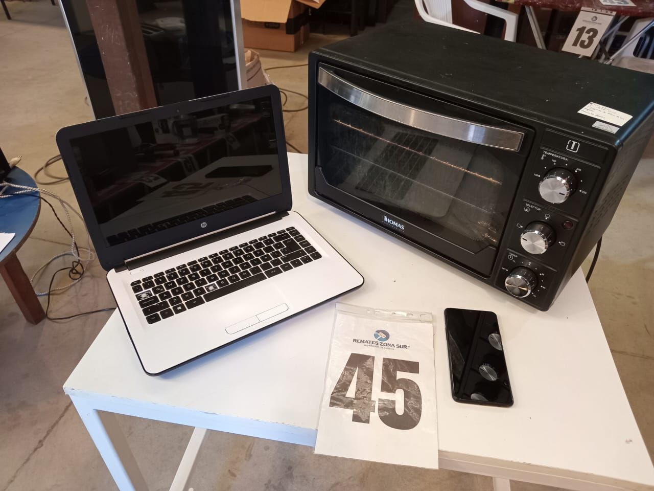 Un celular Samsung A20S. Una notebook HP 14-AM010LA. Una aspiradora Somela compact 1400. Un horno electrico Thomas TH-25N01.