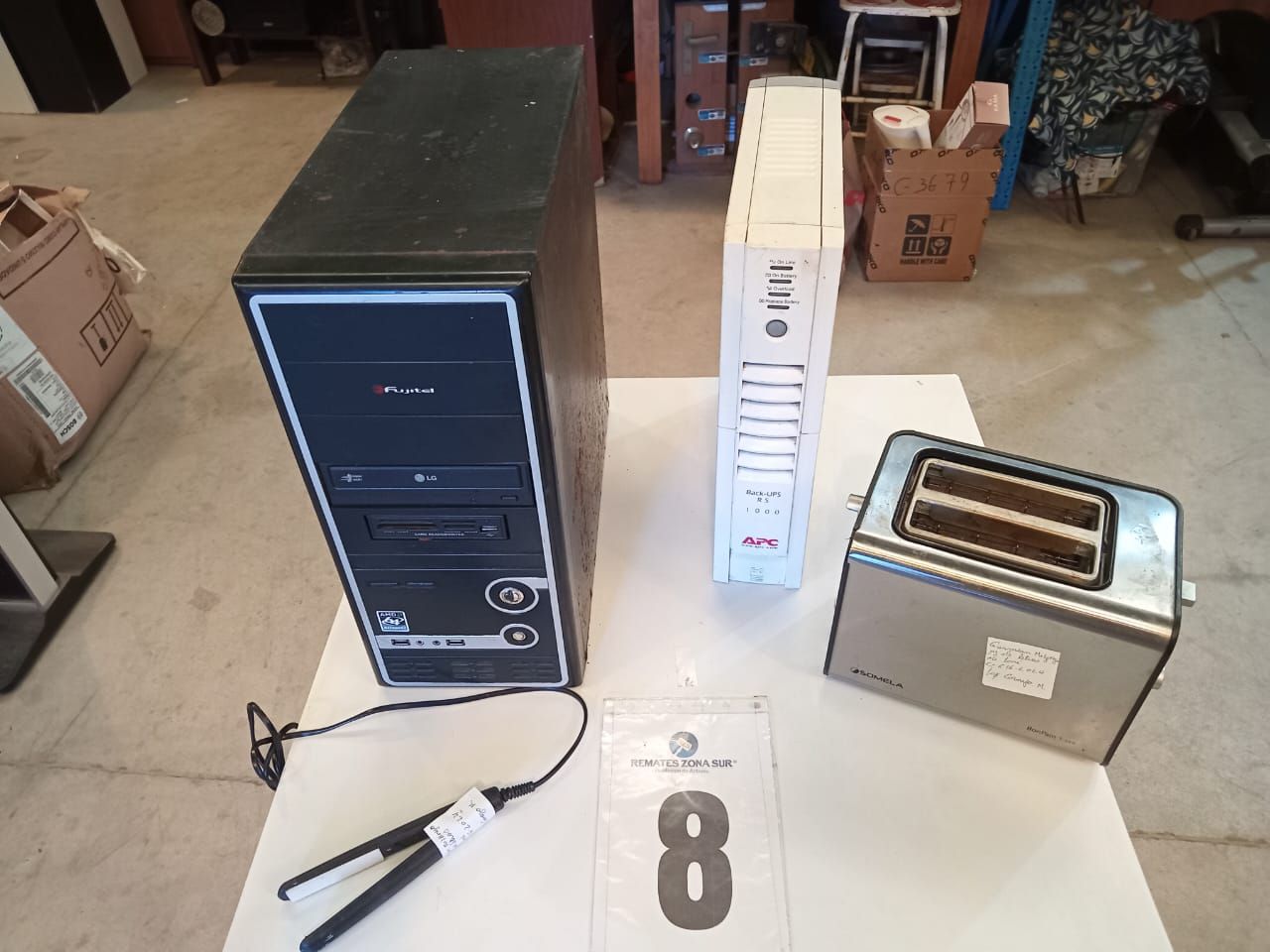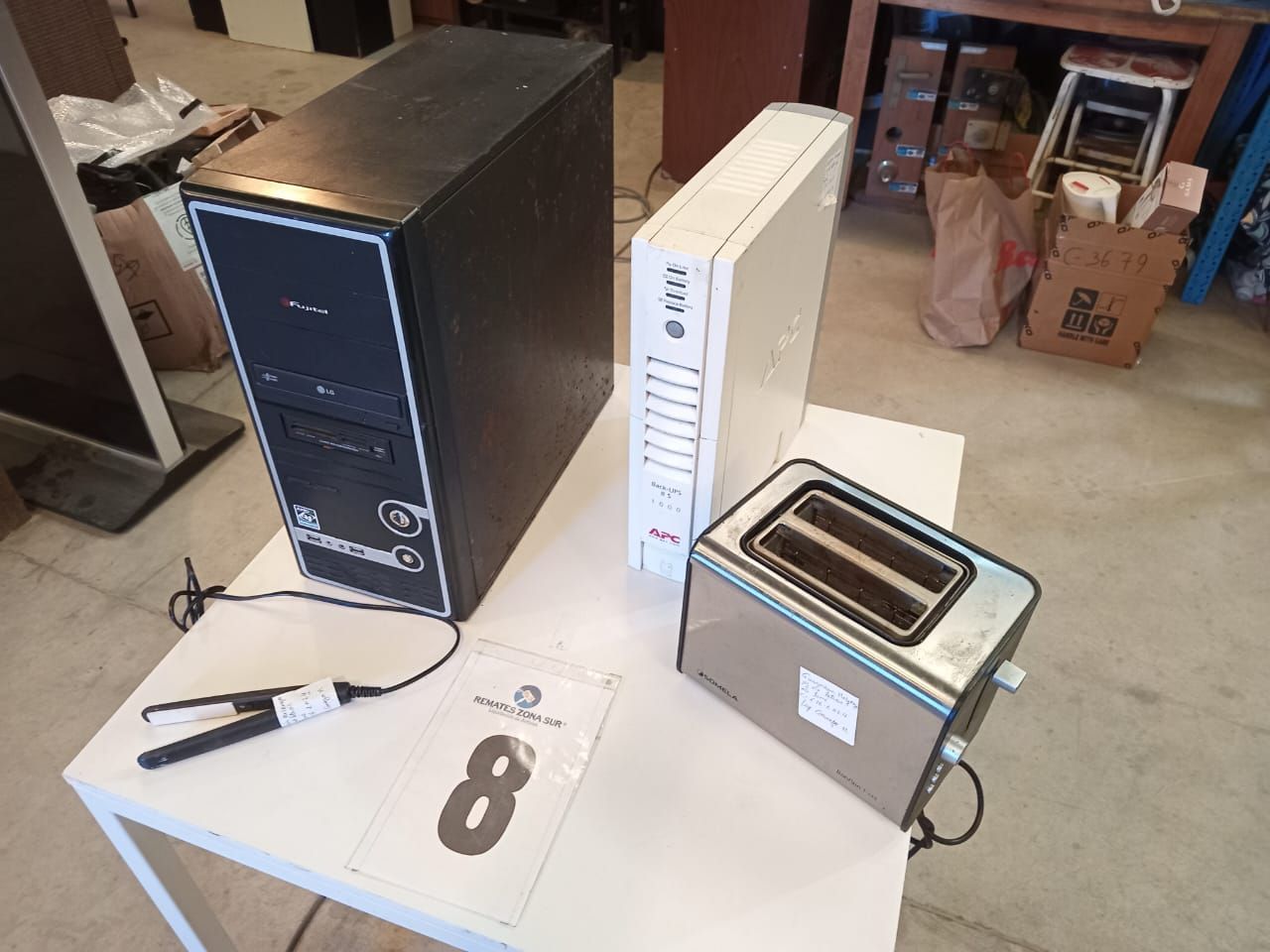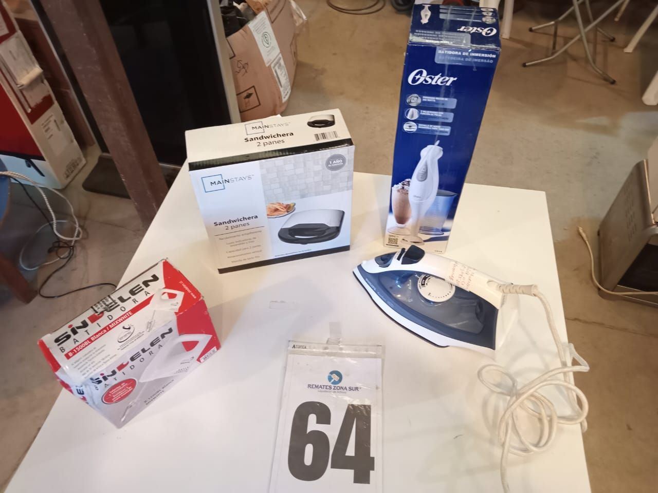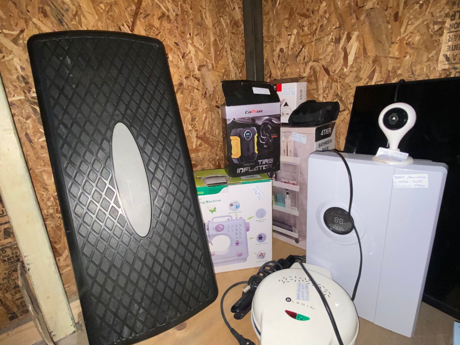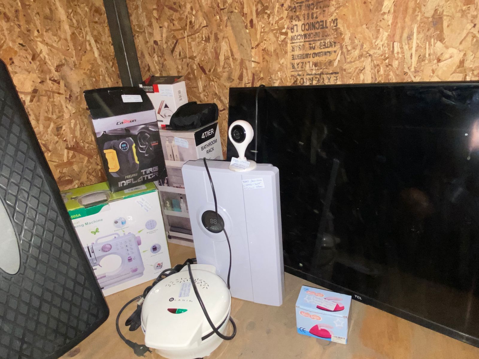 LOTE 91: Un mini Deshumidificador Metex VS-DH02. Una Mini plancha de costura Mundomagia. Una maquina para hacer cupcakes Blanik BCCM012. Una Camara de seguridad. Una Maquina de coser portatil recta con 12 puntadas ECDEAL SEWING. Un Compresor de aire portatil digital 12v neumatico NOVYSTOR. Un Step aerobico 2 niveles CRUSEC. Binoculares profesionales COMET 10X25 campo de vision 112m. Un Limpiavidrios magnetico QATAR SHOP. Un Bathroom rack 4TIER. Una plancha de pelo Phillips. Una repisa blanca de madera Casa Ideas. Un Smart TV 40" TCL 40S65A.