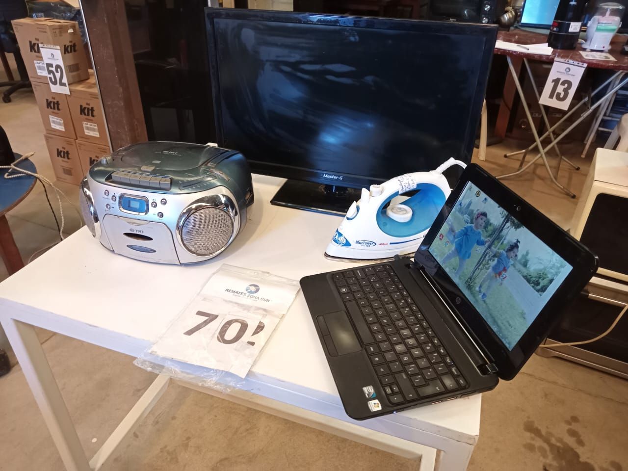 LOTE 70: Un computador HP. Una plancha Sindelen. Un televisor Master G. Una radio IRT. (Retiro en Sede Rzs)