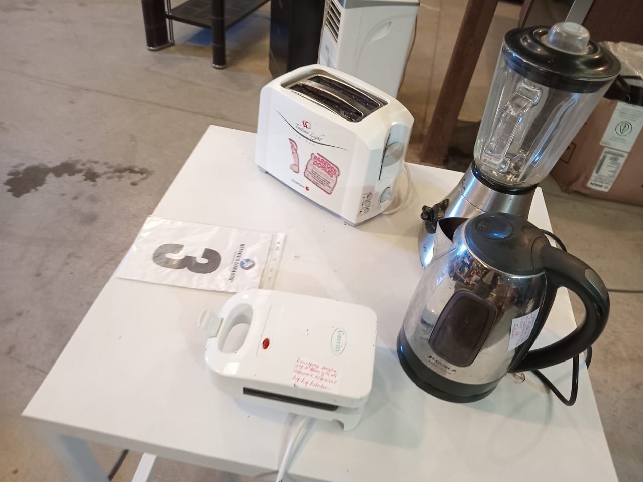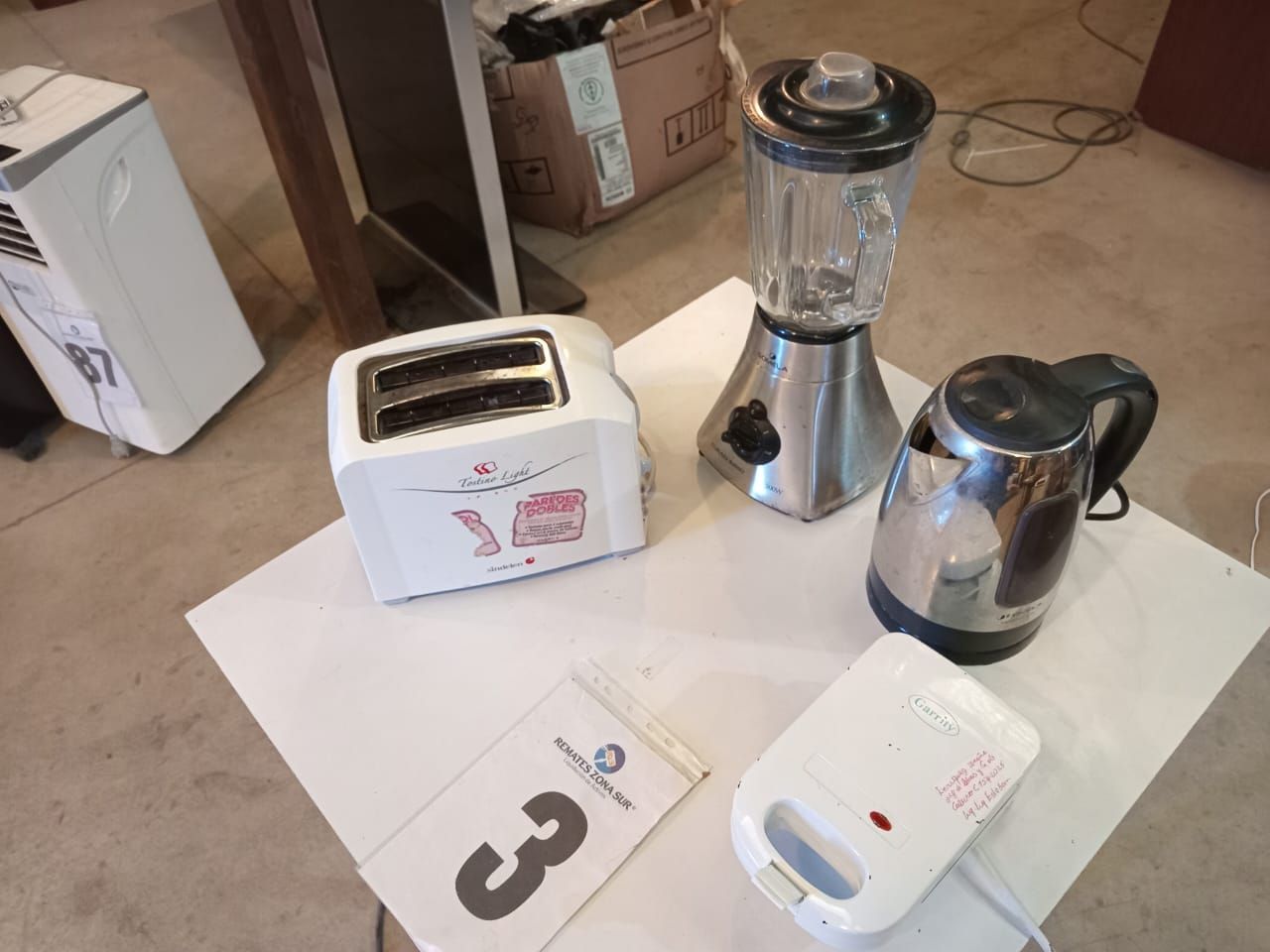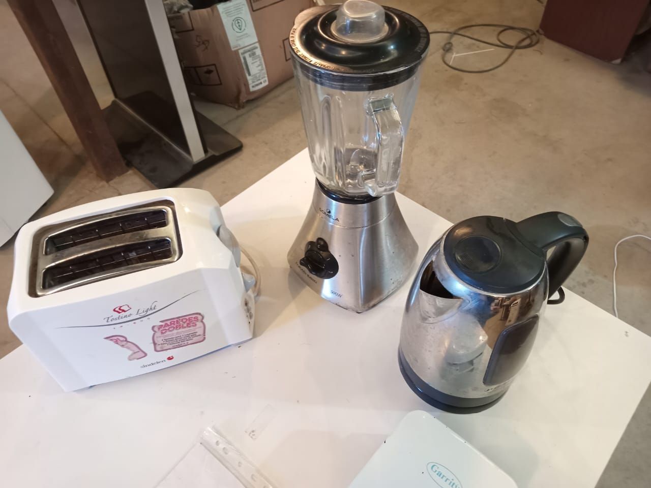 Una tostadora Sindelen. Una sanguchera Garritty. Una juguera Somela.