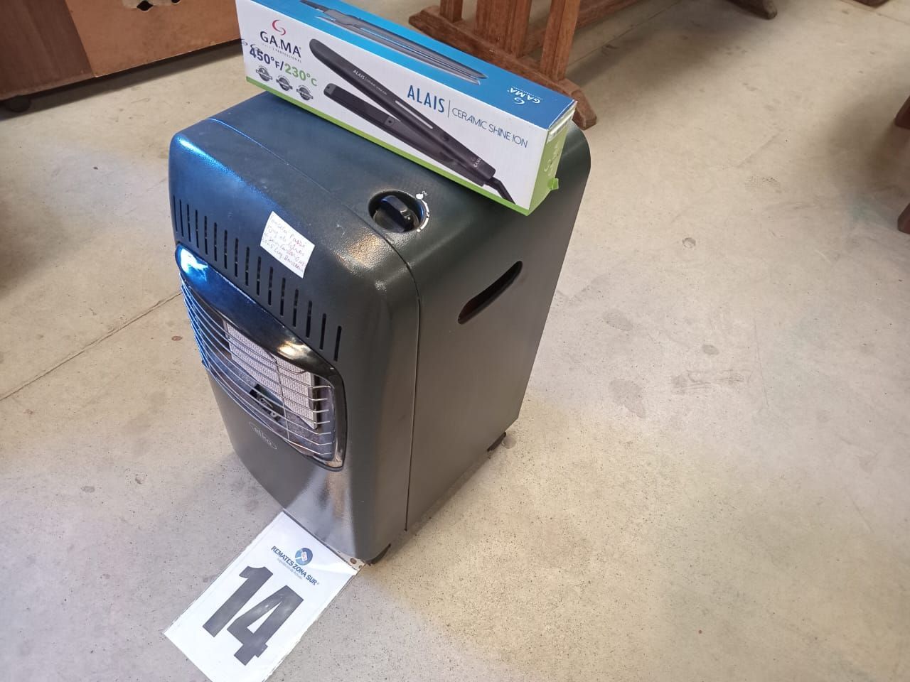 LOTE 14: Una estufa a gas ELKO. Una plancha de pelo Gama.