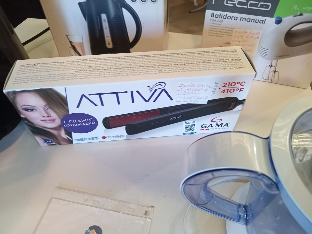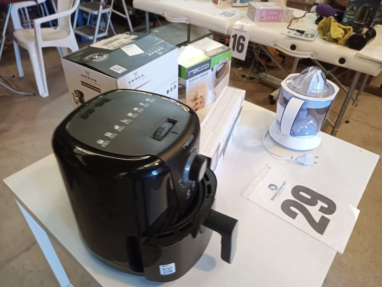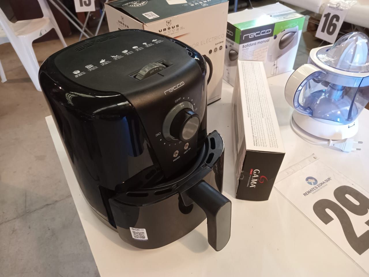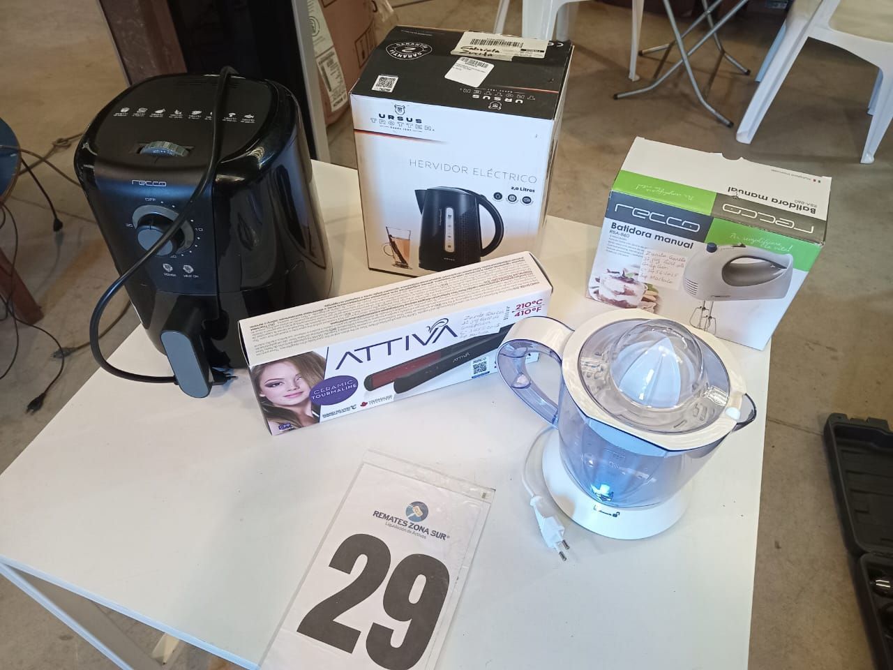 LOTE 29: Un Hervidor electrico 1. 7L Ursus Trotter. Un Exprimidor eléctrico Oster. Una Plancha de pelo Gama. Una Freidora de aire Recco. Una Batidora Recco.