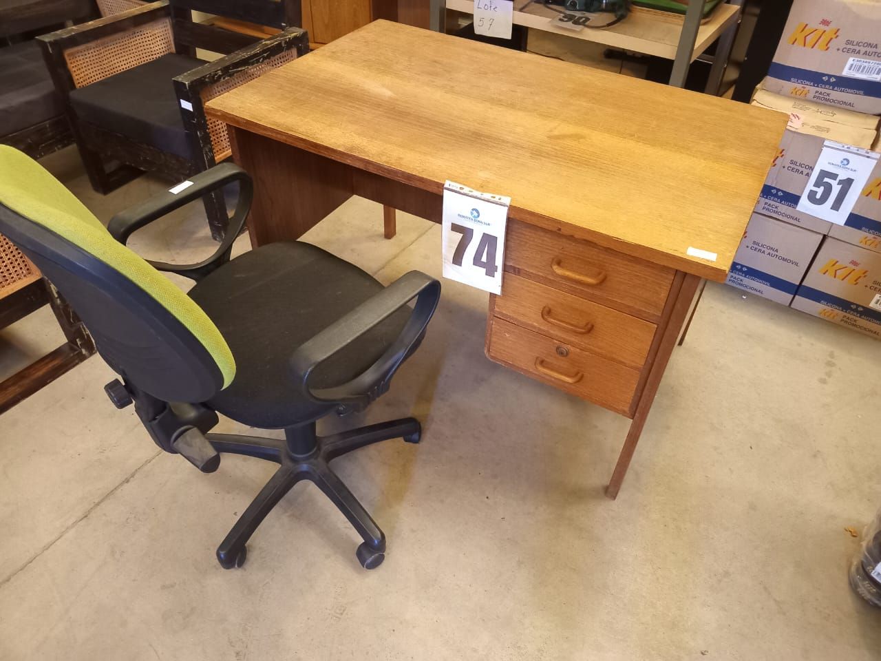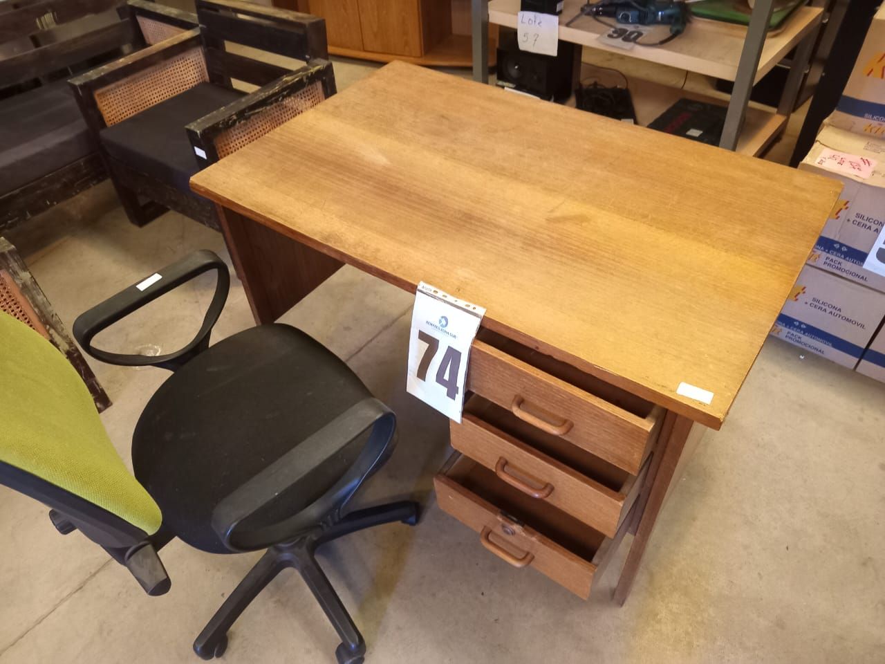 LOTE 74: Una silla de escritorio. Un escritorio. (Retiro En Sede Rzs)