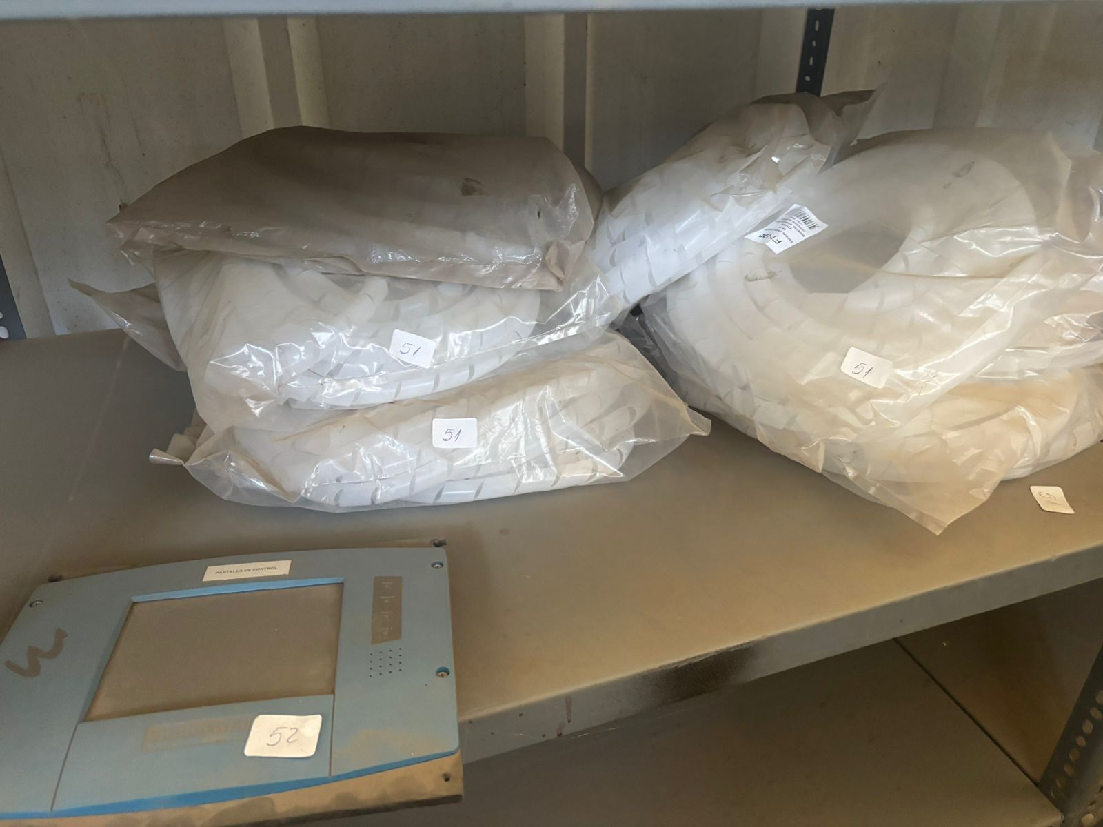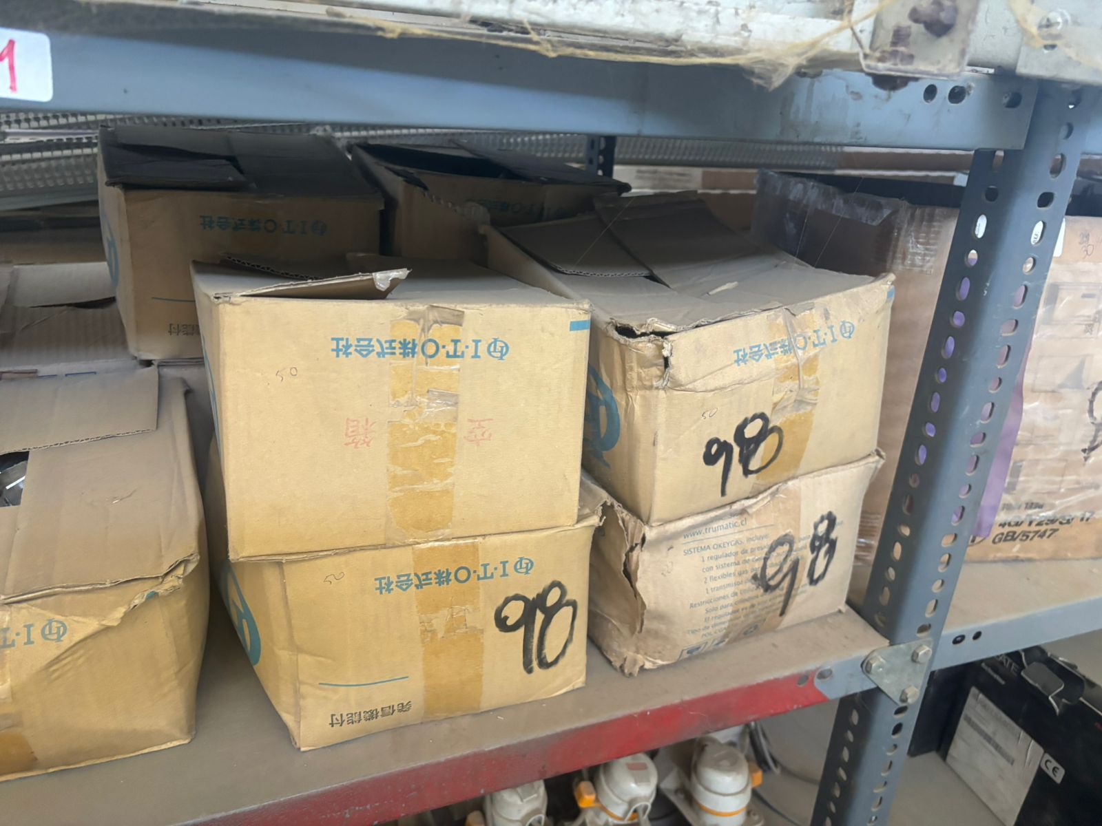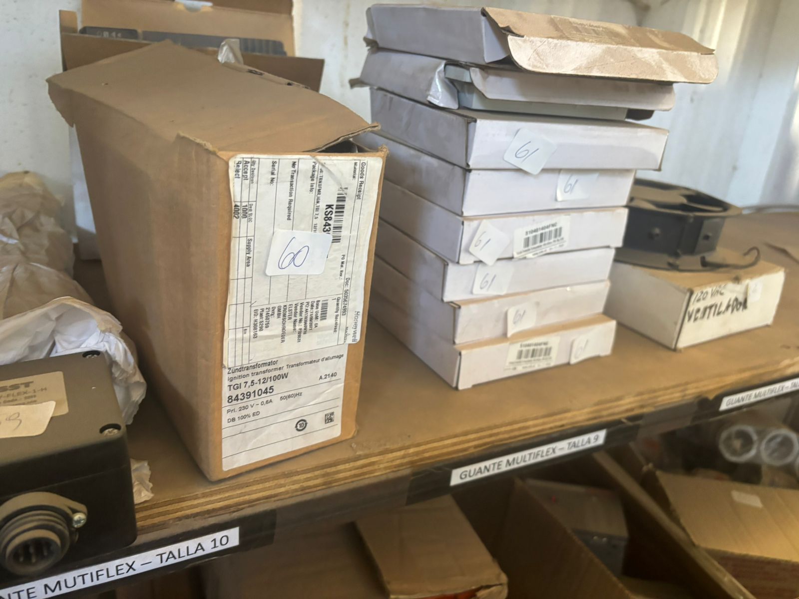 LOTE 88: 06 Codos. 10 Motor Arranque M/Imastesa. Tekle Con 2 Ganchos Y Conducción Manual. 02 Válvulas Electrificante Regular. 02 Quemadores De Gas Industrial. 12 Tubos Resistencia Para Calefactor. 03 Calibradores Diferentes Modelos. Contactos De Bajo Voltaje. Pantalla Teclado Burmer M/Honeywell. 60 Unidades Fusibles. 100 Unidades Soporte Con Cilps. Fuente De Alimentación. Caja Con Accesorios Vidrios Usados. Módulo Actuador M/Honeywell. Control De Llama M/ Honeywell. Transformador Primario 220 Vac. 05 Forros Protector. 10 Montaje De Soporte. Sensor Hot. Ventilador. Mecanismo Cabezal 1505-Hd. Caja Coplas Diferentes Medidas. Rollo Cinta Polipropileno. Sonda De Muestreo. 250 Unidades Tapas Plásticas. Válvula De Mariposa. 07 Cajas Metálicas. 05 Persianas. 02 Cajas De Accesorios Varios. Analizador Combustión M/Bucharach. 110 Pares De Guantes Diferentes Medidas. 20 Overoles C/Blanco. 200 Unidades Mascarillas. Máscara Soldar M/Bauker. 02 Máscaras Respiratorias. 20 Filtros Contra Partículas. 02 Antiparras. 04 Tapones De Oído. 03 Huinches Medir Diferentes Tipos. Escala De 4 Peldaños. 02 Válvulas Manual. 04 Actuador De Damper Válvulas. 04 Transformadores R/Estado. 06 Fuentes De Configuración. 200 Unidades Vidrios Para Soldar. Carcaza. 20 Cuerdas De Vida. 03 Transformador M/Allanson. Válvula Gas M/Krom/Schroder. Control Automático M/Honeywell. 08 Switch Gas M/Honeywell. Módulo Amplificador Llama M/Honeywell. 180 Canaletas Plásticas. 70 Canaletas De Metal. 02 Pizarras De Vidrio.