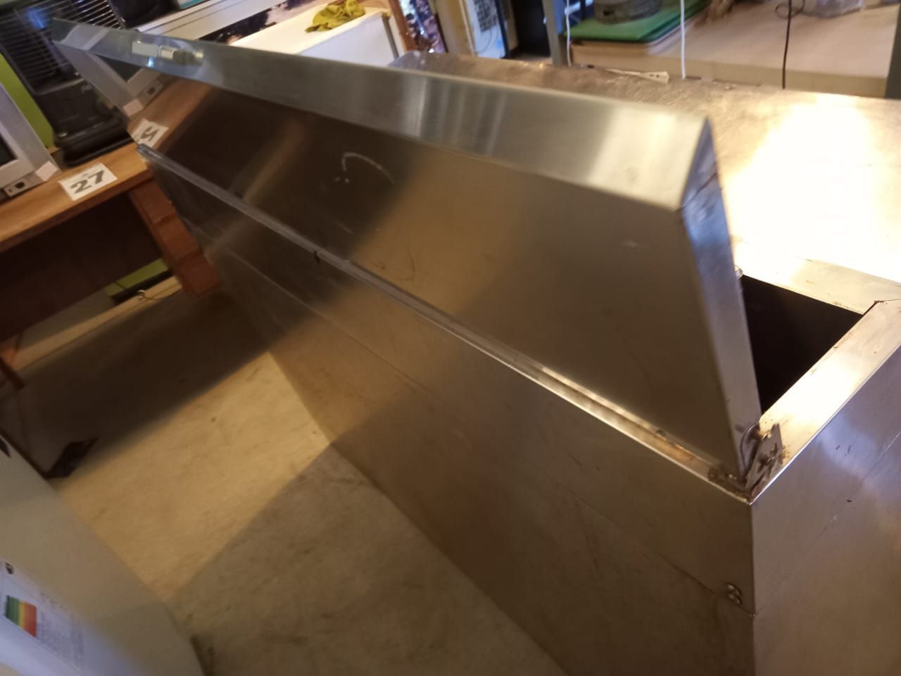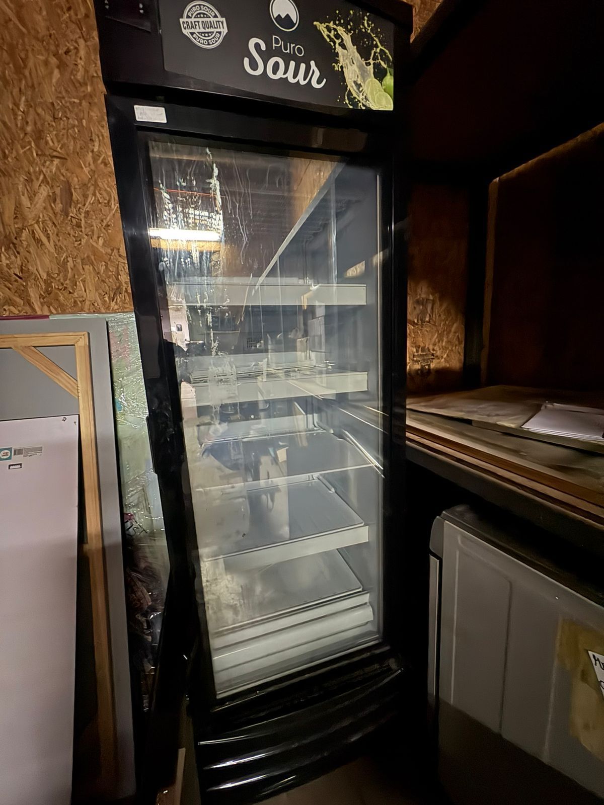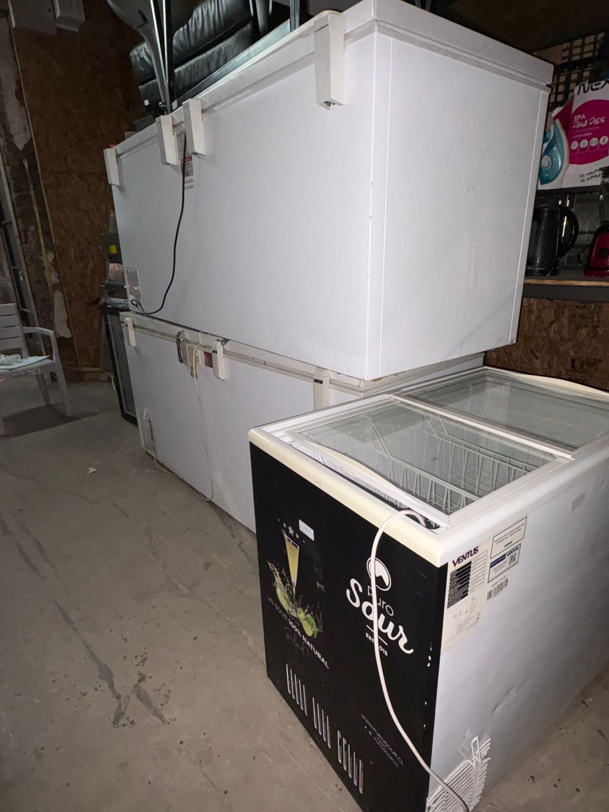 Una vitrina congelados vertical Gellator. 03 mesones murales grandes de acero inoxidable Calvac. 02 meson murales mediano Calvac. Un meson murales pequeño desconche Calvac. Un visicooler congelado sobremeson modelo SD98. Un dosificador de piston neumatico Alfa DP10000T ALFAPACK. Un compresor Oil-Free 50L/1500 UYU. Una selladora continua de liquidos vertical Alfapack. Una conservadora tapa de vidrio Ventus Ctv-210 litros. 07 Cajas de pisco artesanos (6 unidades). Una repisa meetalica cromada. Una repisa metalica negra. 03 pizarra pared. Una silla blanca comedor. Un piso bar regulable. Un Escritorio blanco melamina metal. Un escritorio cafe metal. Un ventilador Nex torre. Un enfriador aire Home Kendal. Un termoventilador Thomas. Una estufa electron. Un ventilador sobremesa Home Kendall. Una computadora Spektra.