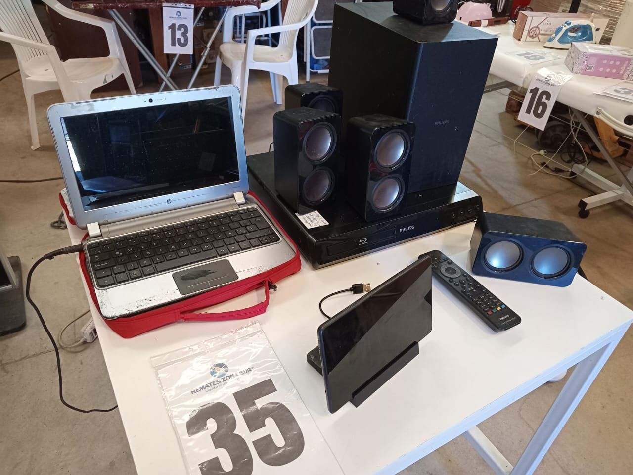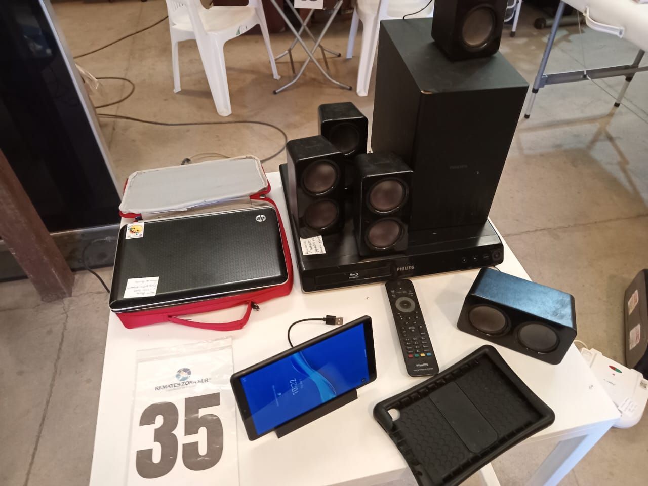 LOTE 35: Un Home Cinema Phillips. Una Tablet Lenovo. Una Notebook Hp.