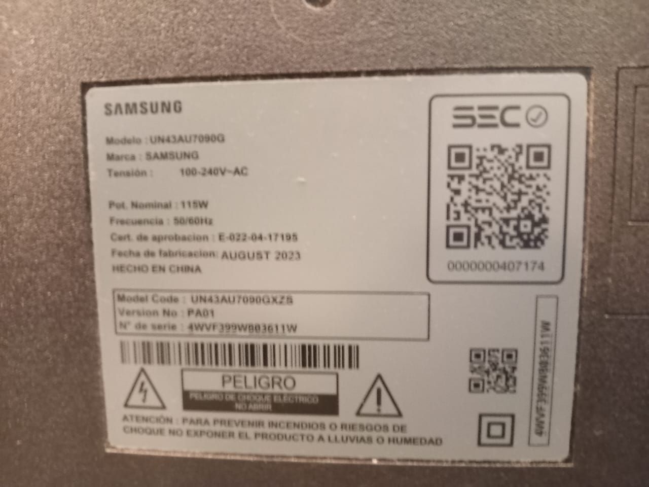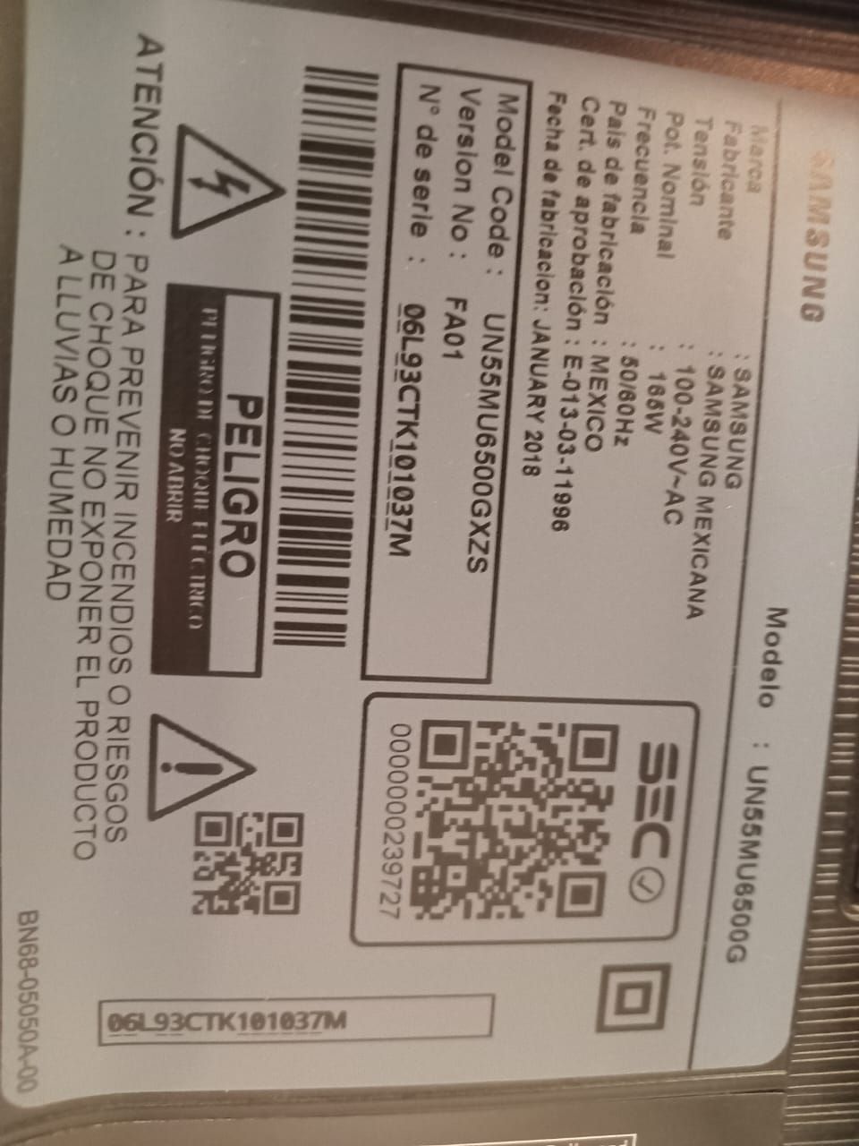 Un TV Samsung curva pantalla dañada.