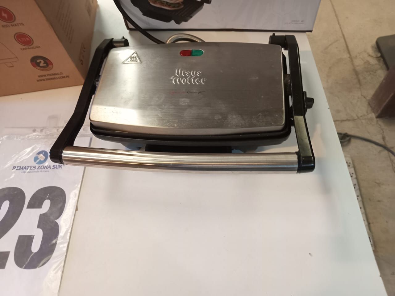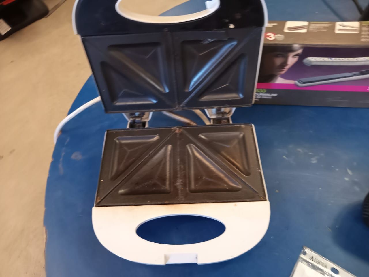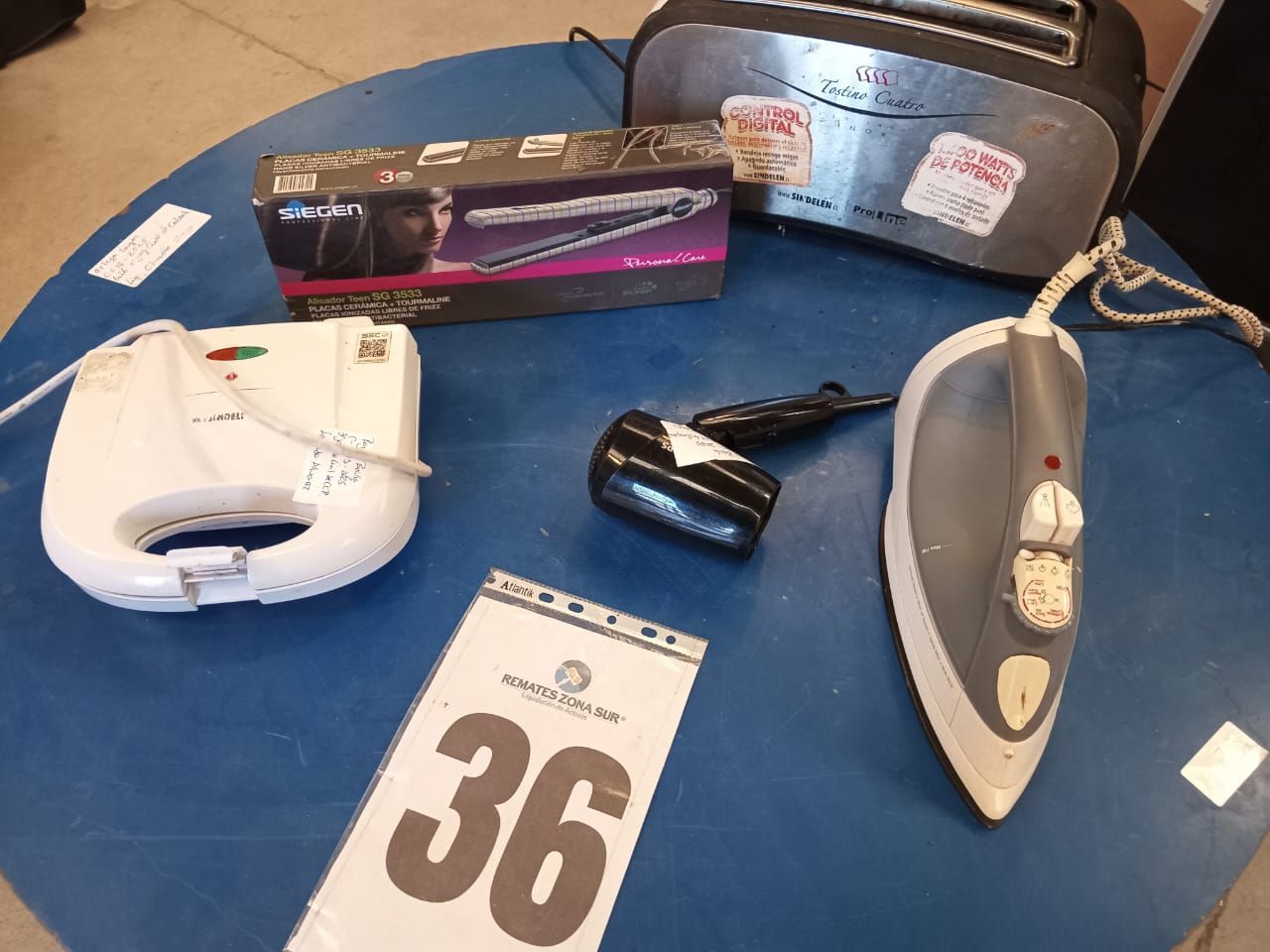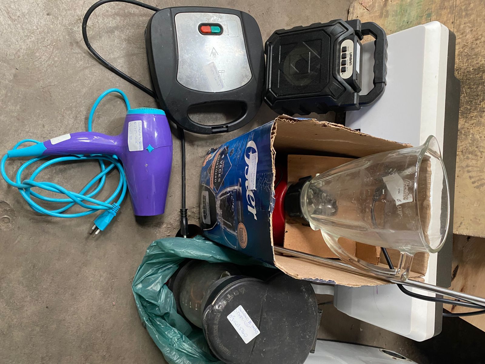LOTE 26: Un horno electrico Thomas. Un secador de pelo Somela. Una plancha de pelo Gama. Una sandwichera Oster. Un celular Samsung. Una depiladora Philips. Un suboofer macrotel. (Retiro En Sede Rzs)