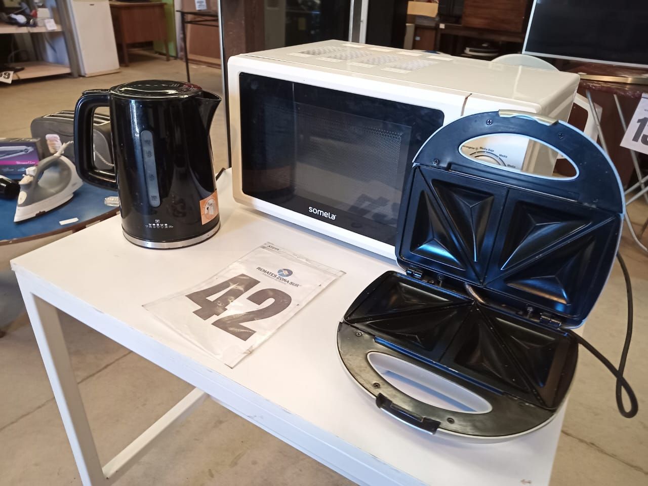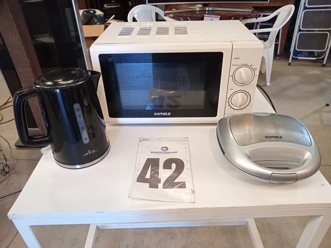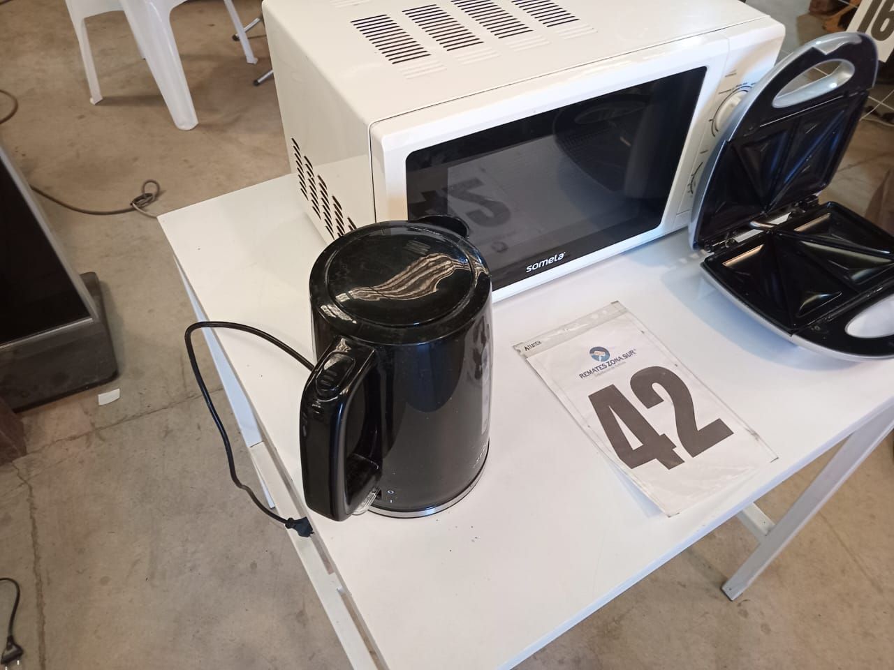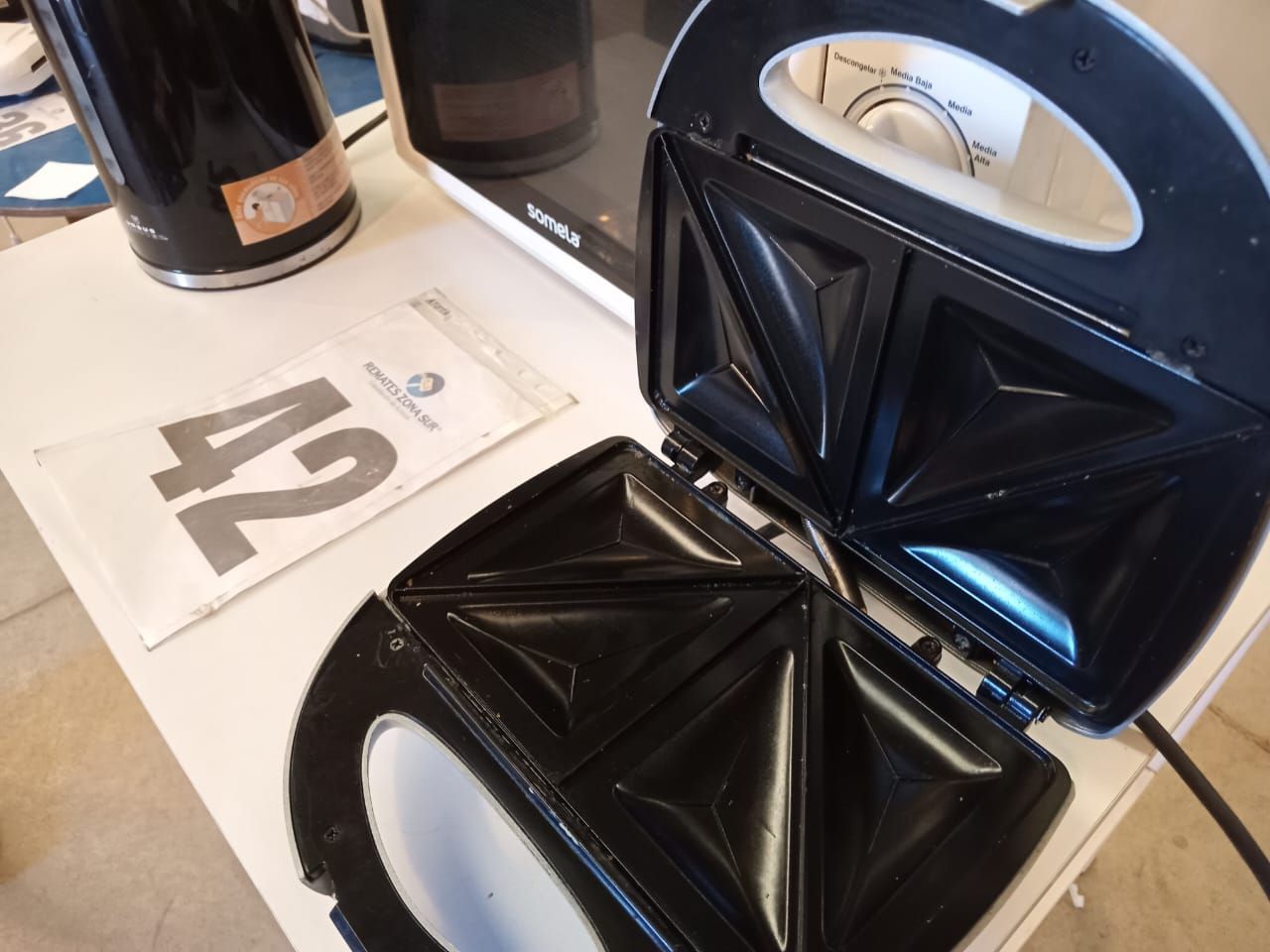 LOTE 42: Un Hervidor Ursus Trotter. Una Sandwichera Somela. Una Microondas Somela. (Retiro En Sede Rzs)