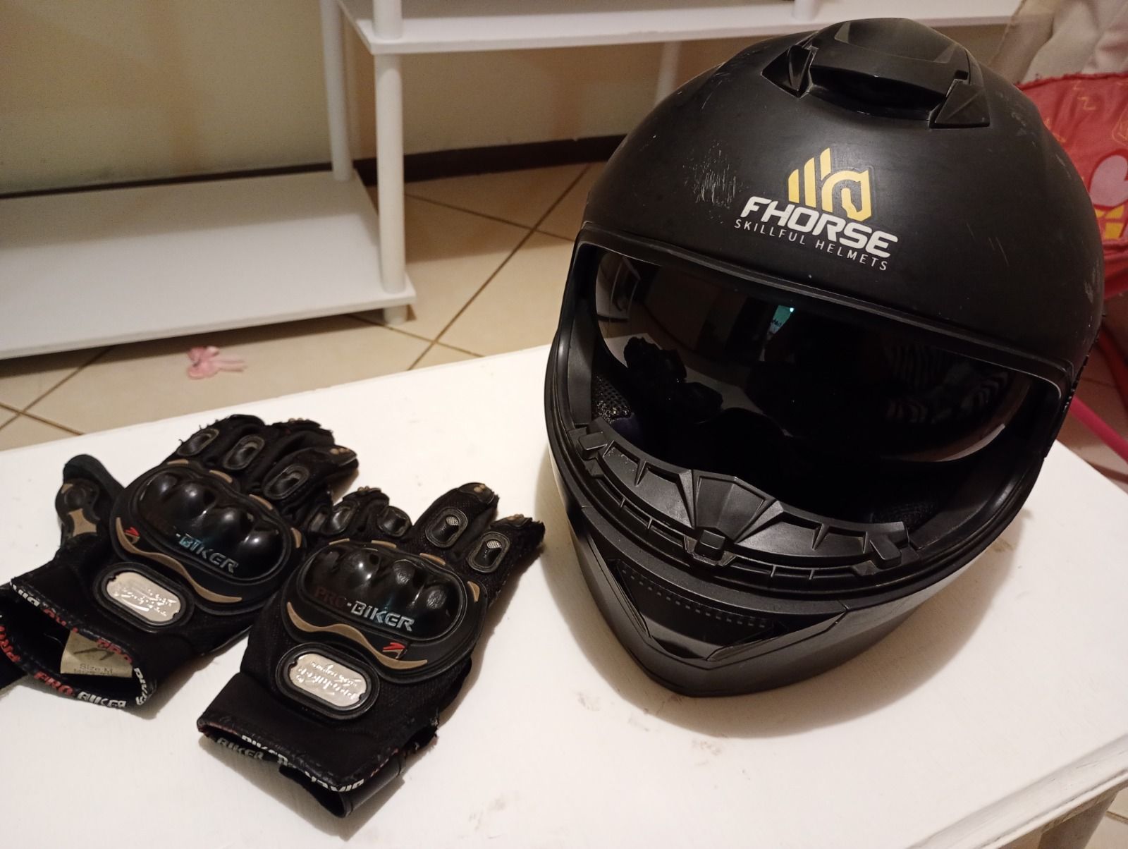 LOTE 94: Un casco talla L. Unos guantes Bianchi. Un hervidor Thomas 2 lt. Un sillón rojo tres cuerpos. Tres sillas. Un celular Huawei. Un iPhone s. Un calefactor Nex. (Retiro en Talca)