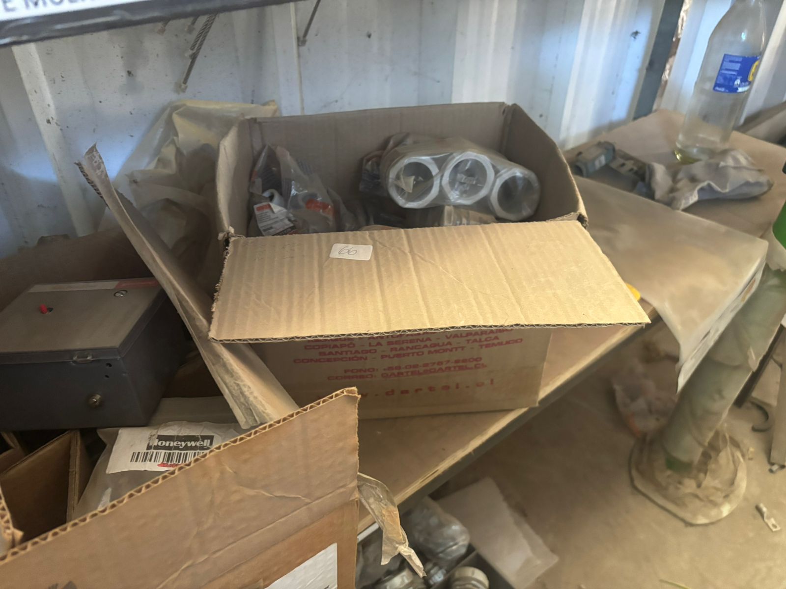 LOTE 86: 02 Rollos De Alambre. 05 Cajas Con Cinta De Sellado. 10 Brocas Diferentes Medidas. 35 Cables De Bujías. Caja De Accesorios-Varios Usados. Transformador De Encendido. 08 Celosía Embutida Termoplástico. 80 Tubos Flusforecentes. 30 Prensa Estopra Diferentes Medidas. 60 Soportes Metálicos. 06 Cinceles. 06 Módulos Control Burner M/ Honeywell. 04 Módulos Análogo M/Honeywell. 04 Módulos Deración Aire Y Combustible M/Honeywell. 05 Amplificador De Llama M/Honeywell. 10 Mimi Peeper M/Honeywell. 02 Módulos Control M/Honeywell. Un Módulo Base M/Honeywell. 01 Antocomprobación Dinámica Ultravioleta M/Honeywell. 02 Amplificador De Llama Rectificación M/Honeywell. (Retiro En Stgo. De Chile)
