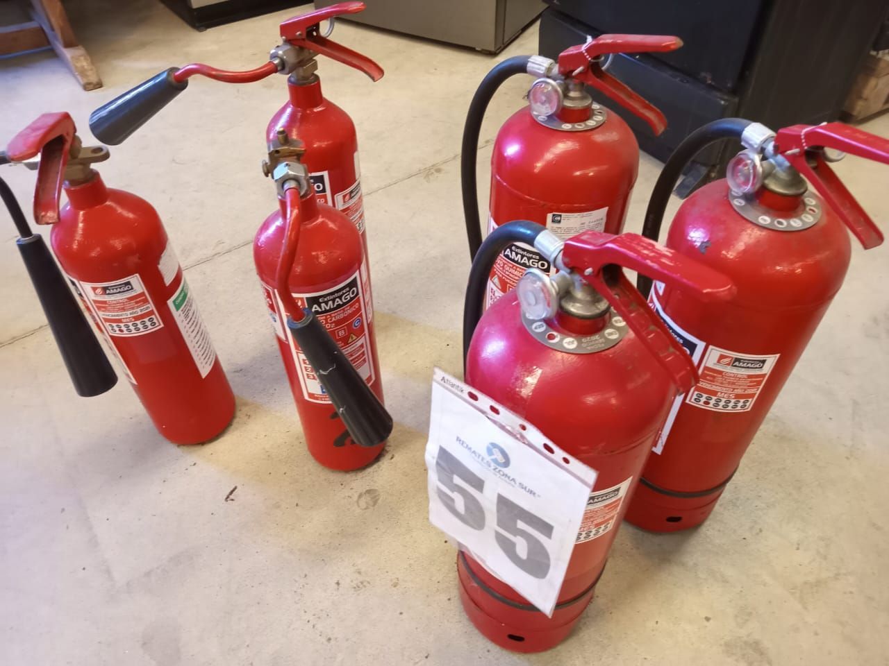 LOTE 55: 06 extintores, 03 de 6 kg. Y 3 de 2kg.