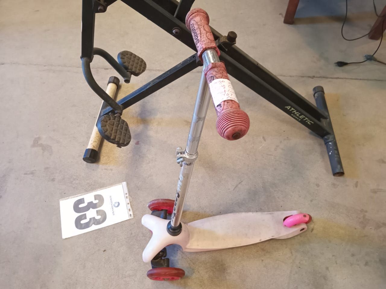 LOTE 33: Un Monopatín Scooter de niños. Una Maquina de ejercicio Athletic Works. . (Retiro En Sede Rzs)