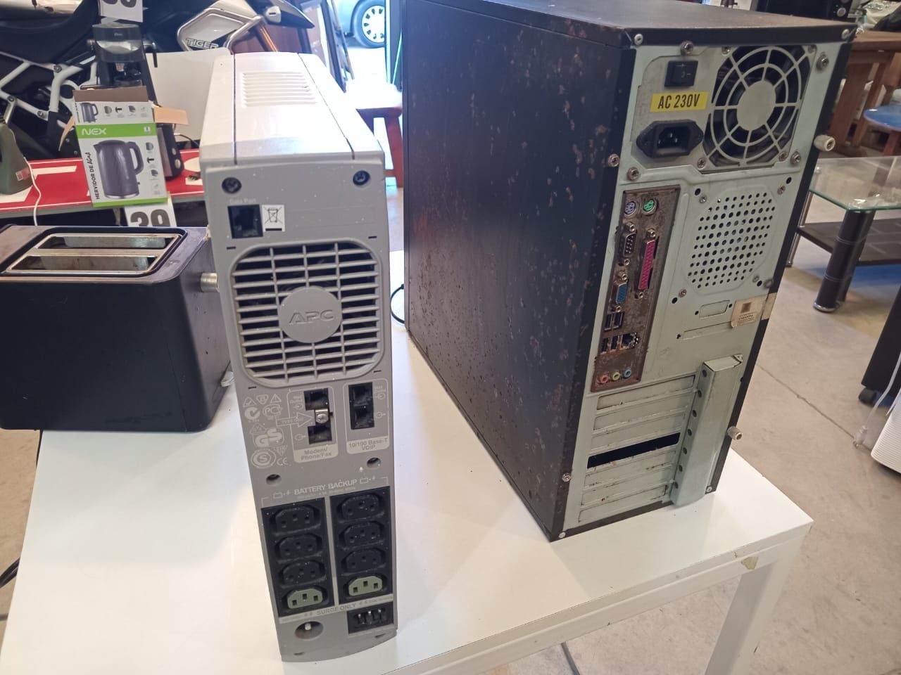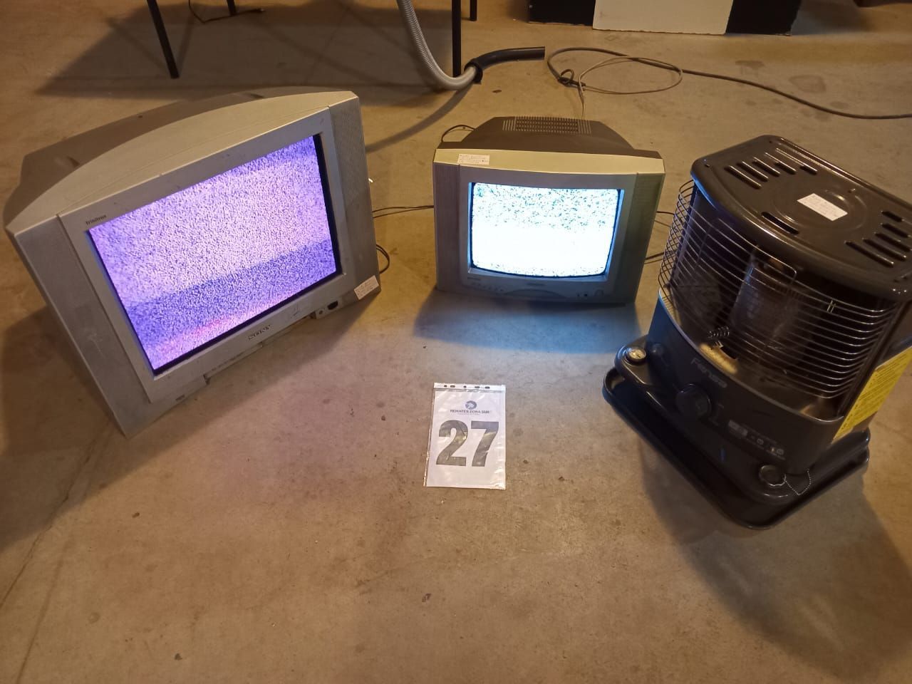 Un televisor Recco. Un televisor Sony. Una estufa a parafina Fensa.