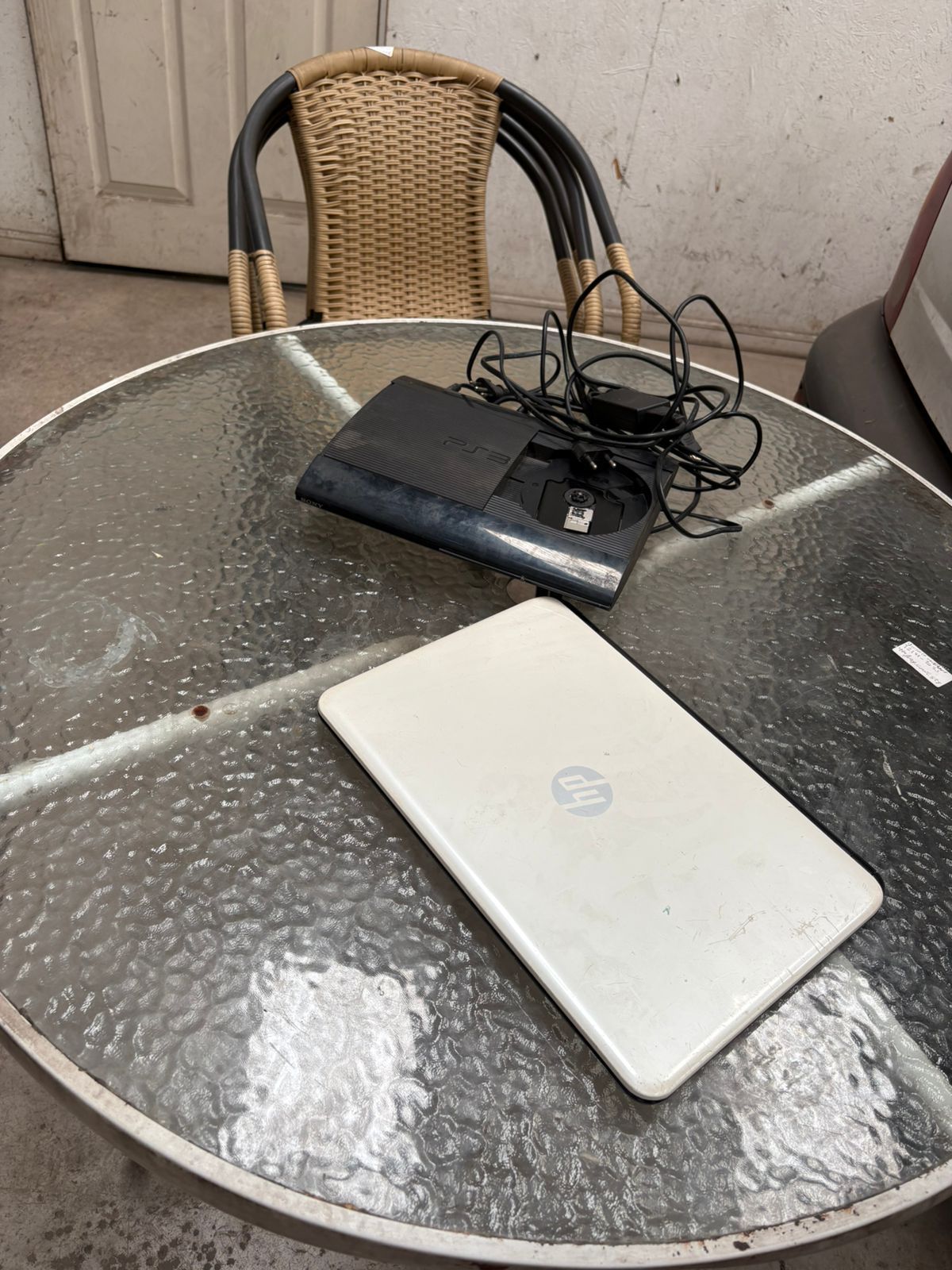 LOTE 101: Un juego de terraza con 4 sillas ratan generico. Una trotadora Muvo Oxford Endurance. Una laptop Hp. Un futon generico. Un playstation 3 Sony. (Retiro En Stgo. De Chile)