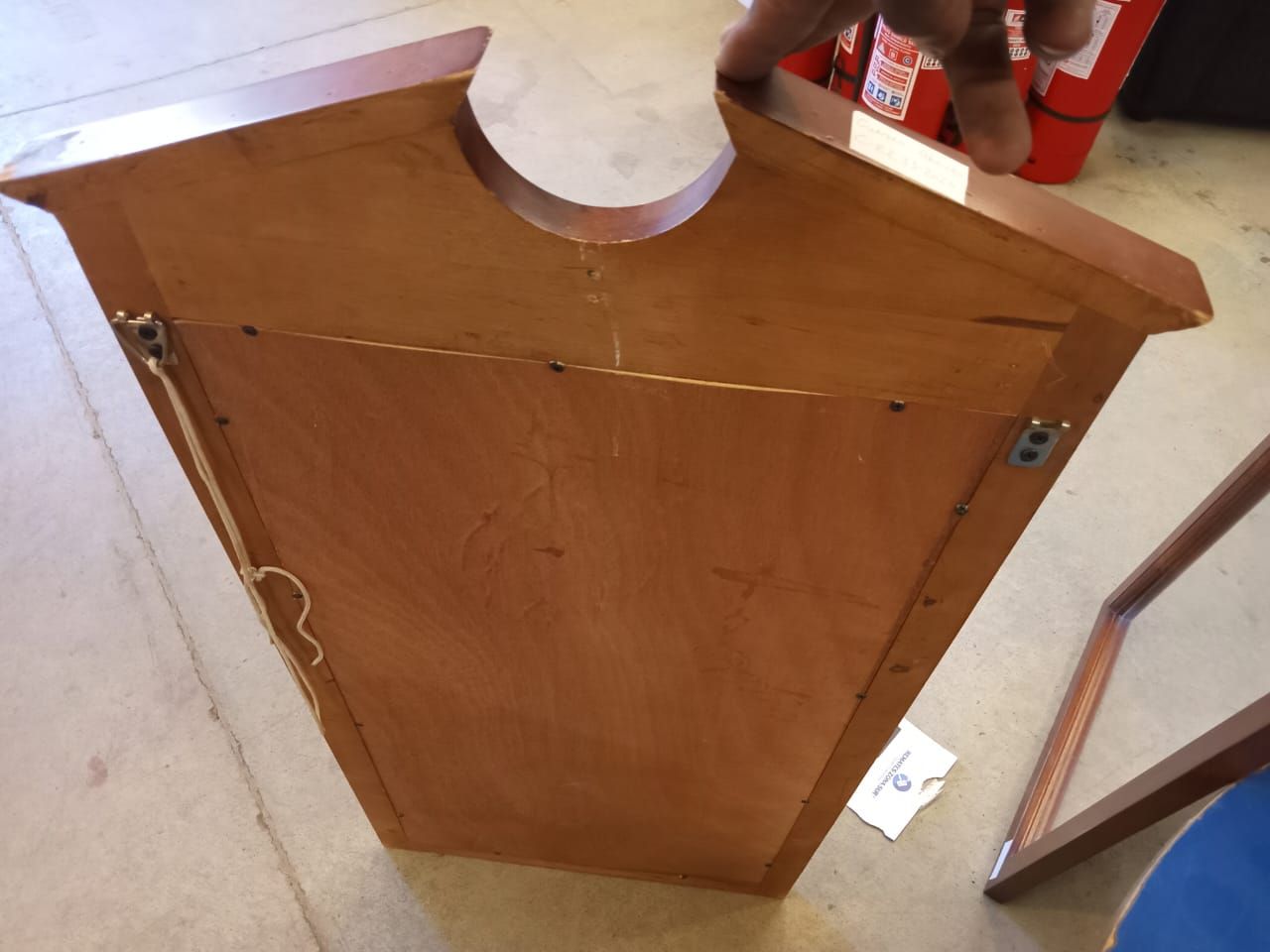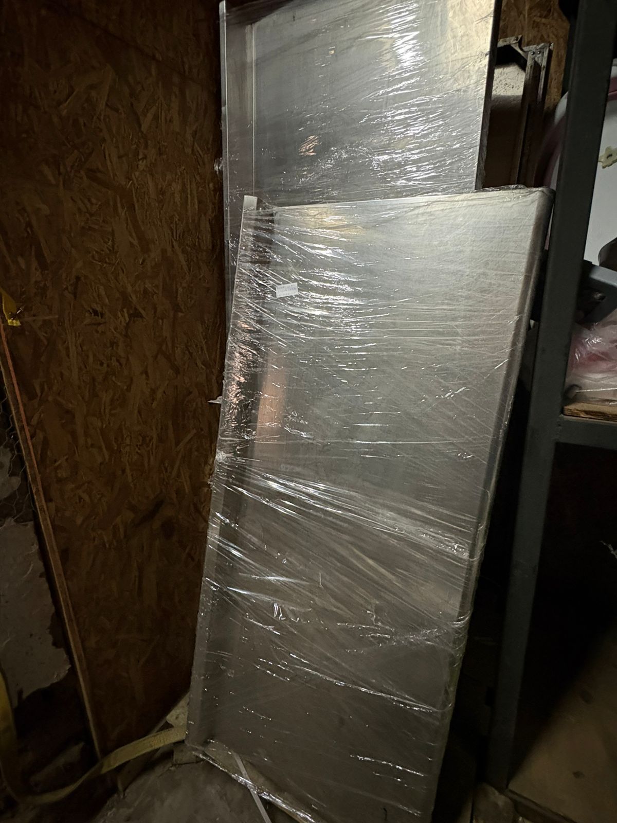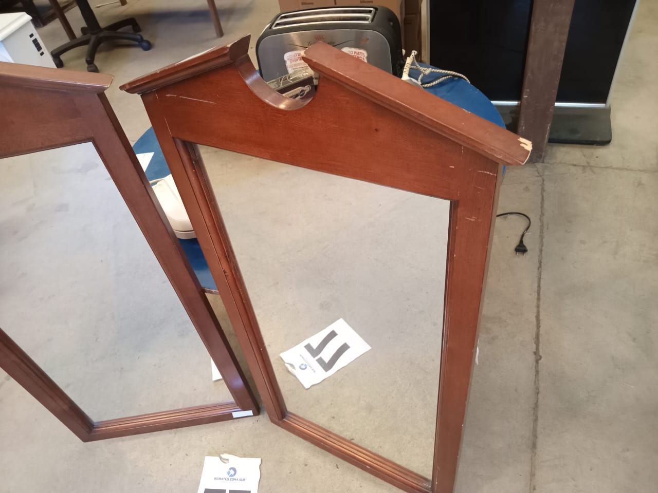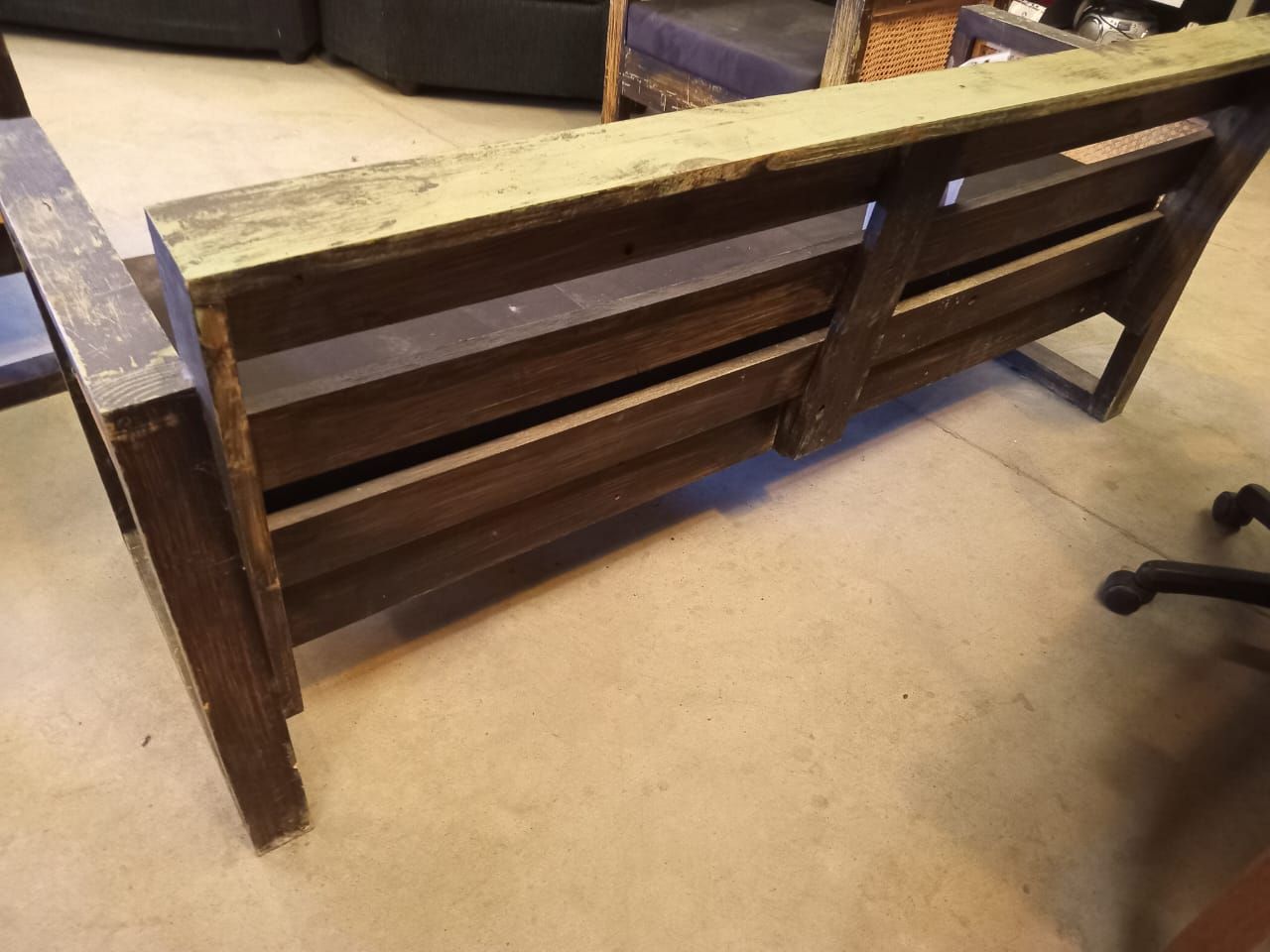 LOTE 106: Un container. Una mesa esquinera. Un espejo de pared. Un sofa de cuero. (Retiro En Stgo. De Chile)