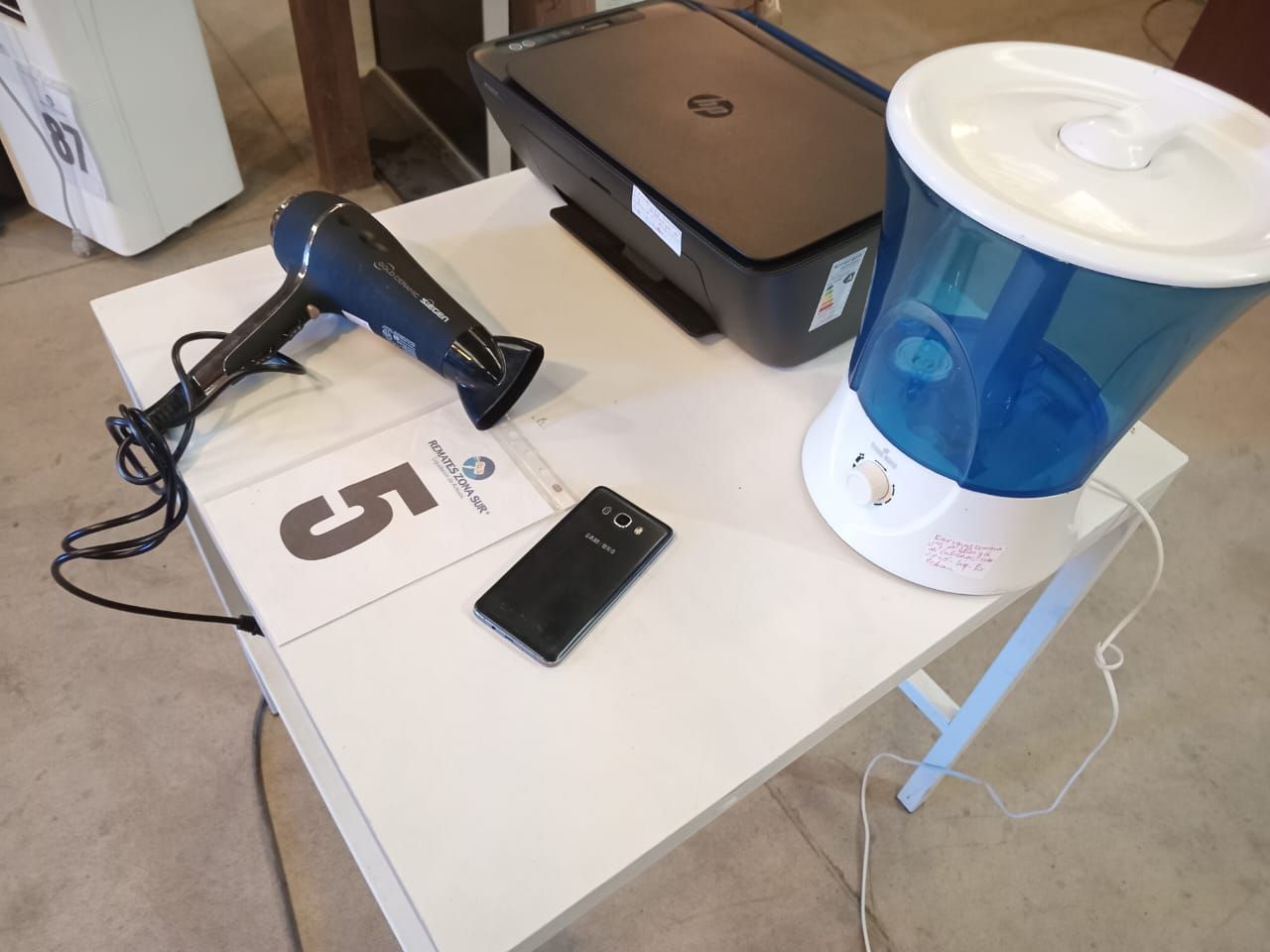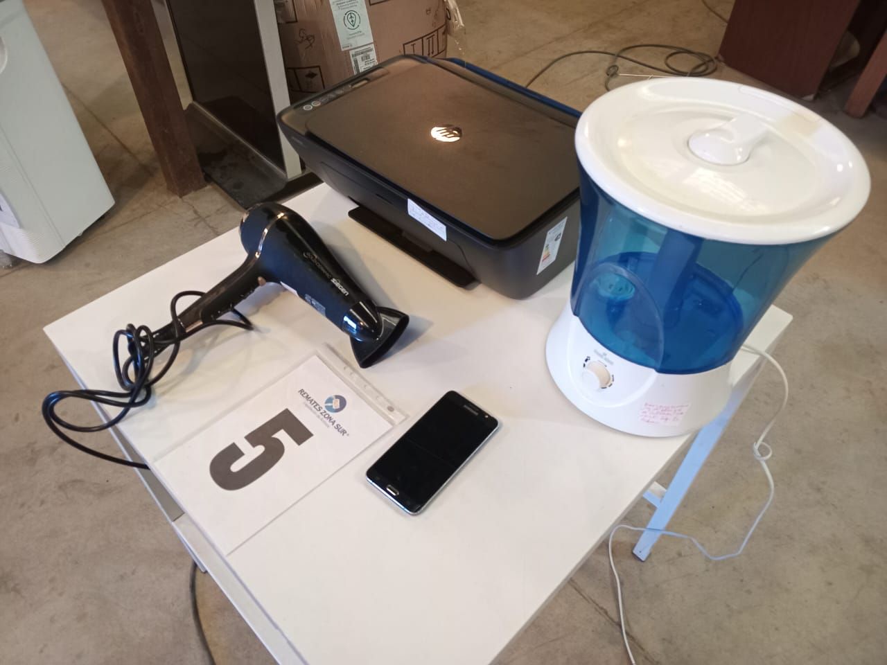 LOTE 05: Un humidificador Humiking. Una impresora HP. Un secador de pelo Sieguen. Un celular Samsung. (Retiro en Sede Rzs)