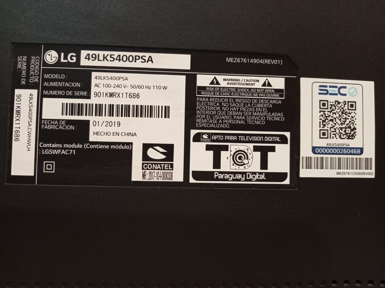 LOTE 108: Un Tv marca LG 43". Un Secador de pelo Gama. Un Horno eléctrico Thomas 48 Litros. Un Notebook HP 245 G6. Una Parrilla Eléctrica Thomas TH-224. Una Estufa eléctrica Kioto tipo Halógena. Una Depiladora lasser Gama. (Retiro En Constitucion)