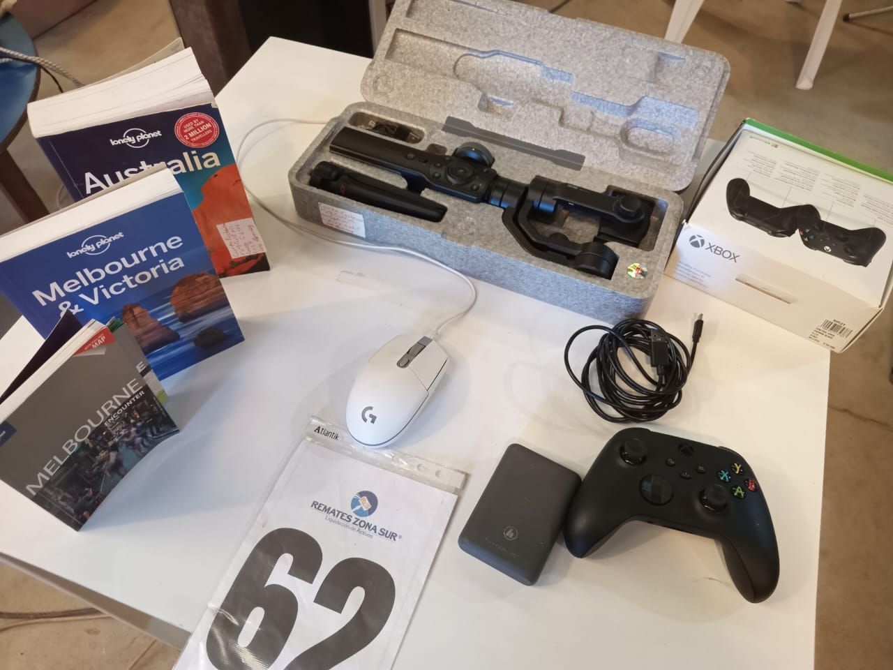LOTE 62: Un control XBOX, Carbon black. Un estabilizador Gimbal, Zhiyun Smooth 4. Una bateria externa, Marca Hama Supreme 10hd. Un mouse Logitech G203. 03 Libros Lonely planet. (Retiro En Sede Rzs)