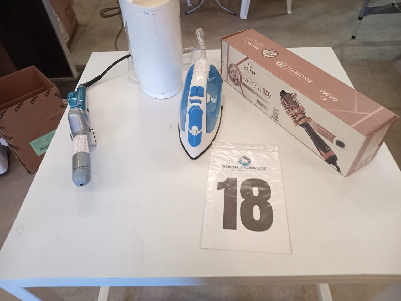 LOTE 18: Un hervidor. Un cepillo secador 5 en 1. Un onduladora. Una plancha de ropa. (Retiro En Sede Rzs)