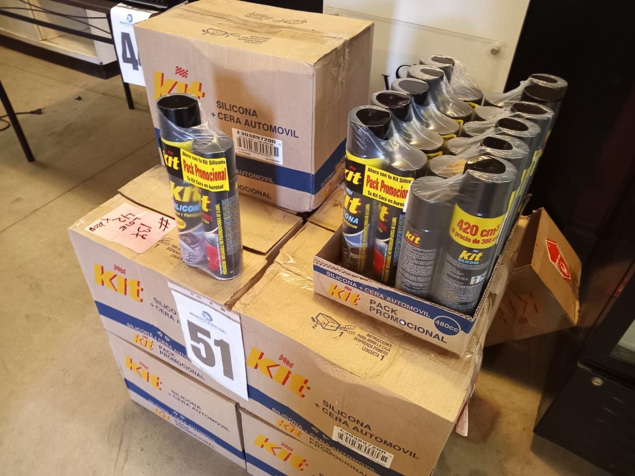 LOTE 51: 10 cajas de silicona + cera automóvil y cada caja tiene 12 paquetes.