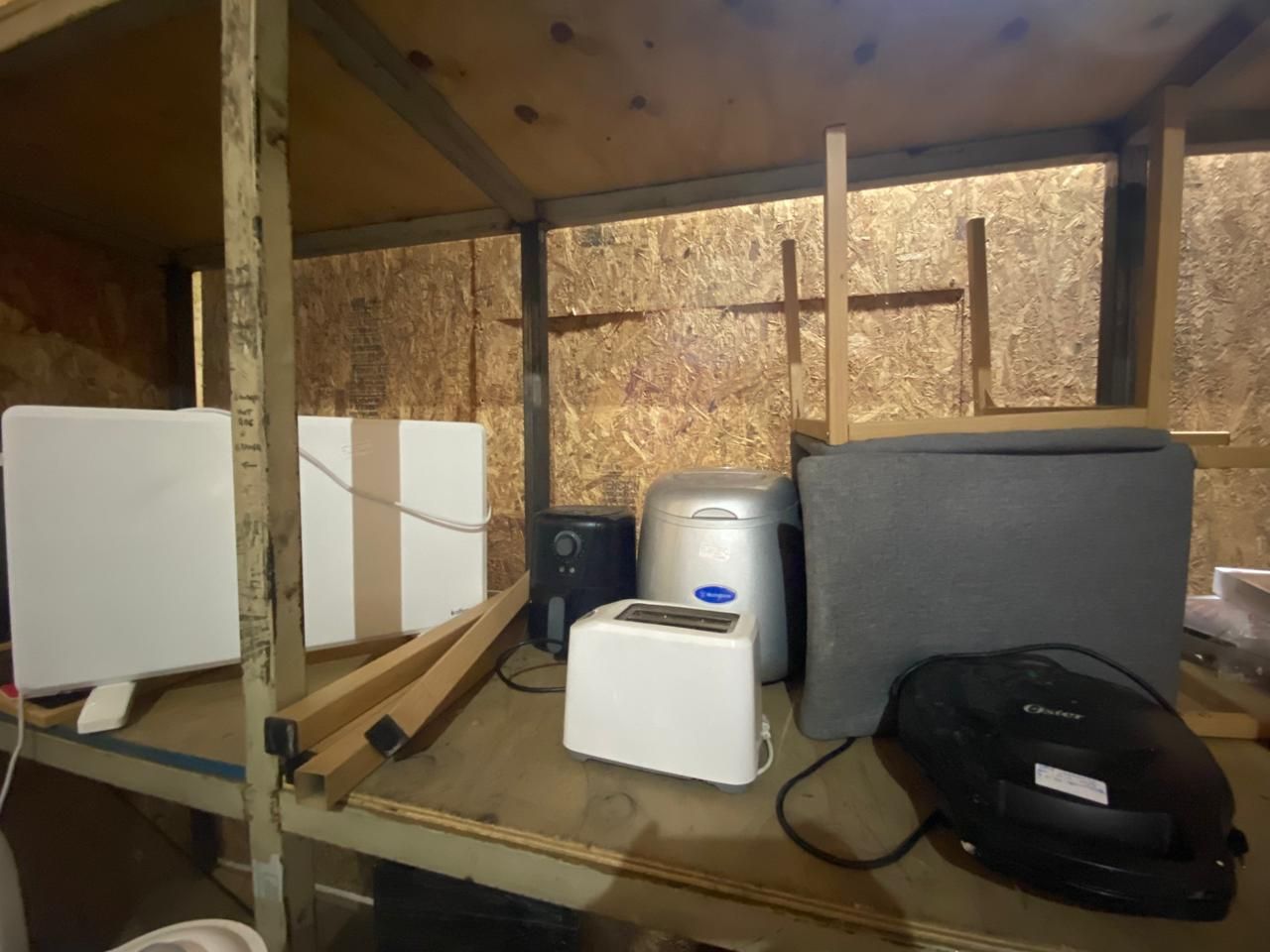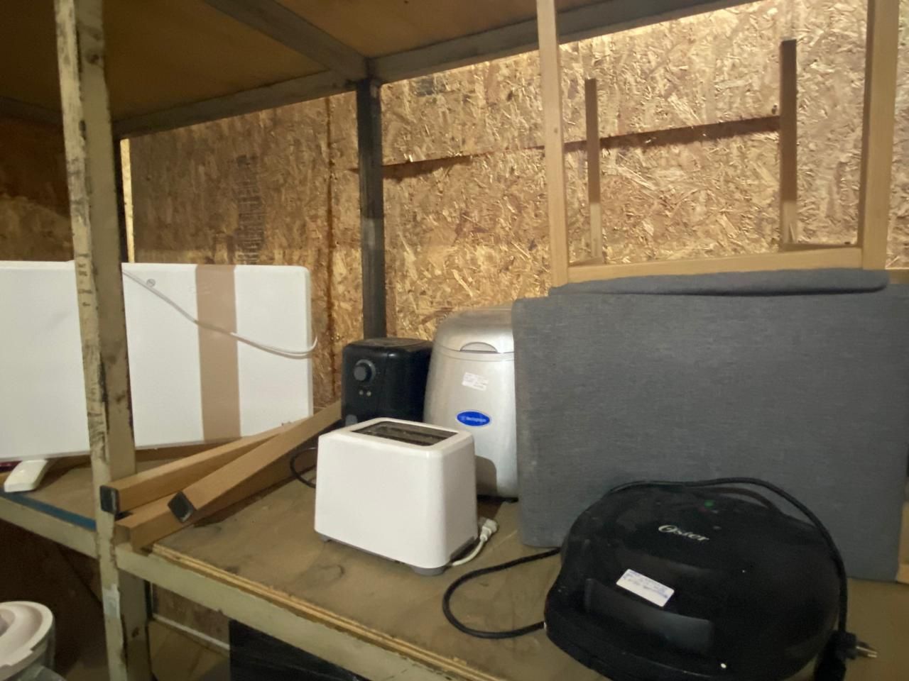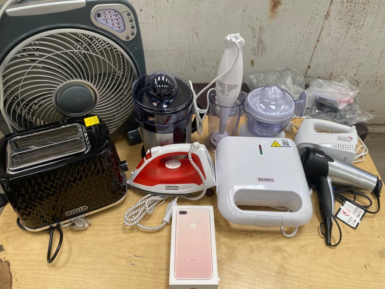 LOTE 127: 02 Velador. Secador de pelo. Mesa para terraza. 02 Sillas terraza. Juguera recco. Hervidor Recco. Maquina para hacer hielo. Tostiarepas Oster. 02 Plancha de ropa. Tostador de pan. Calefactor. Mesa de Comedor. 02 Sillas de Comedor. 02 lamparas de velador. Extractor de jugo. Audifonos inalambrico. (Retiro En Stgo. De Chile)
