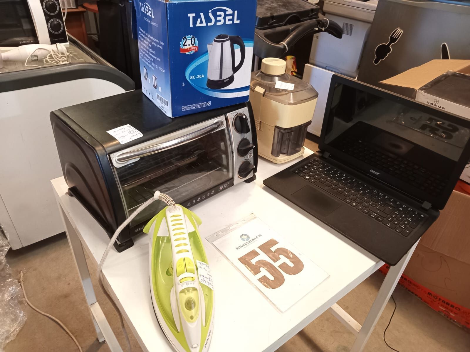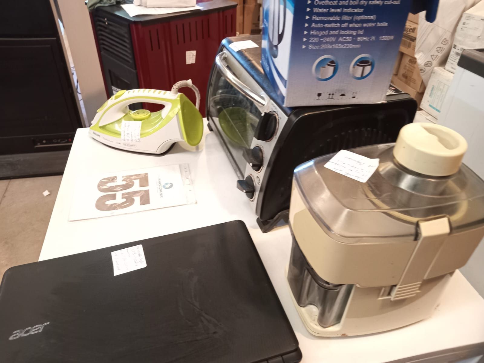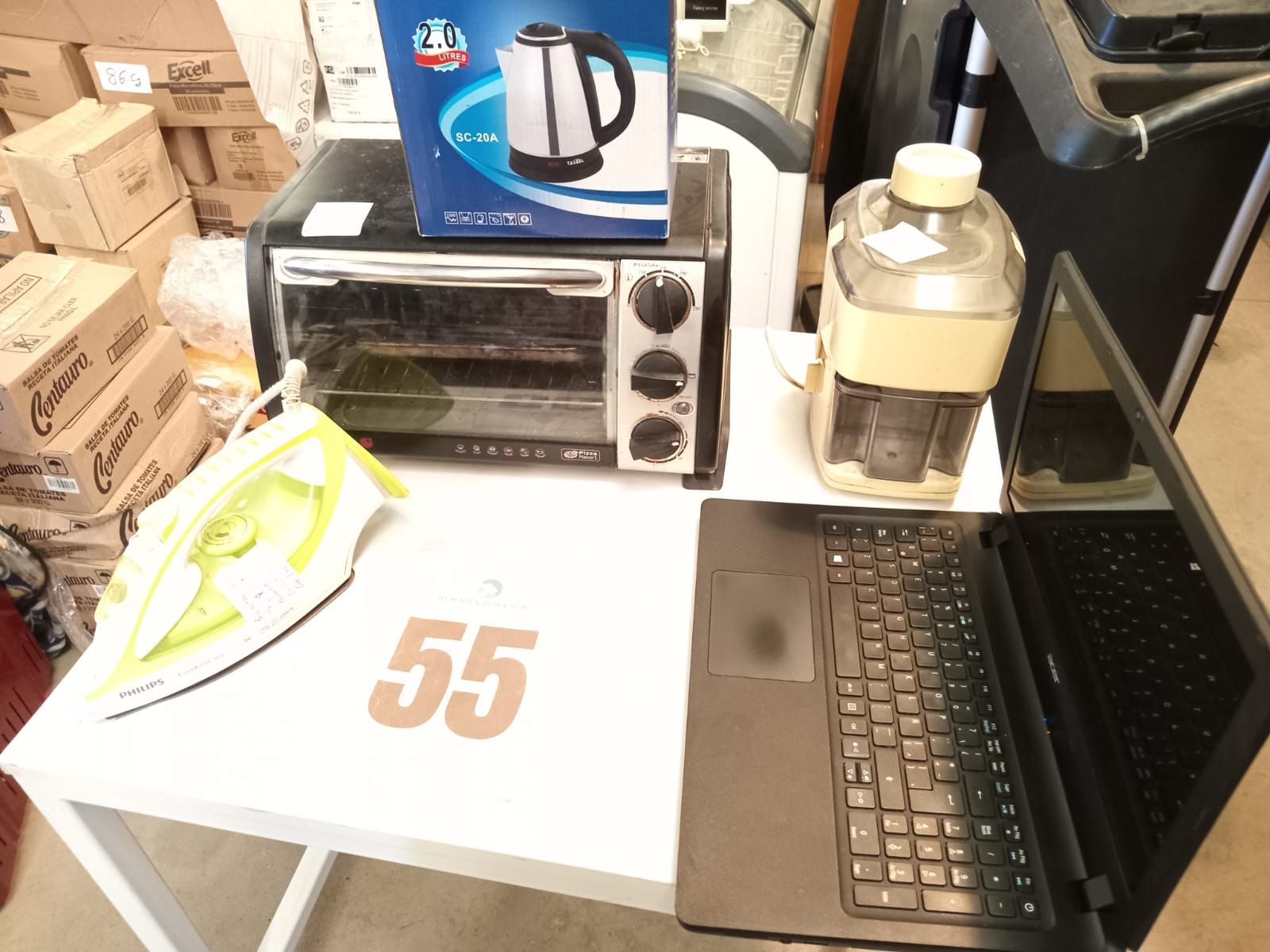 LOTE 55: Saca Jugo Somela T-338. Hervidor Asbel SC-20. Plancha a vapor Philips GC2720. Horno electrico Sindelen HE-17NG. Notebook Hacer Aspire ES1-572.
