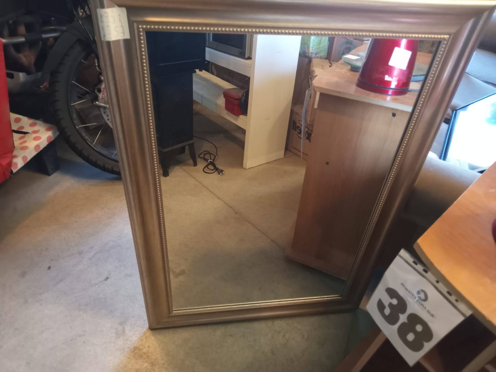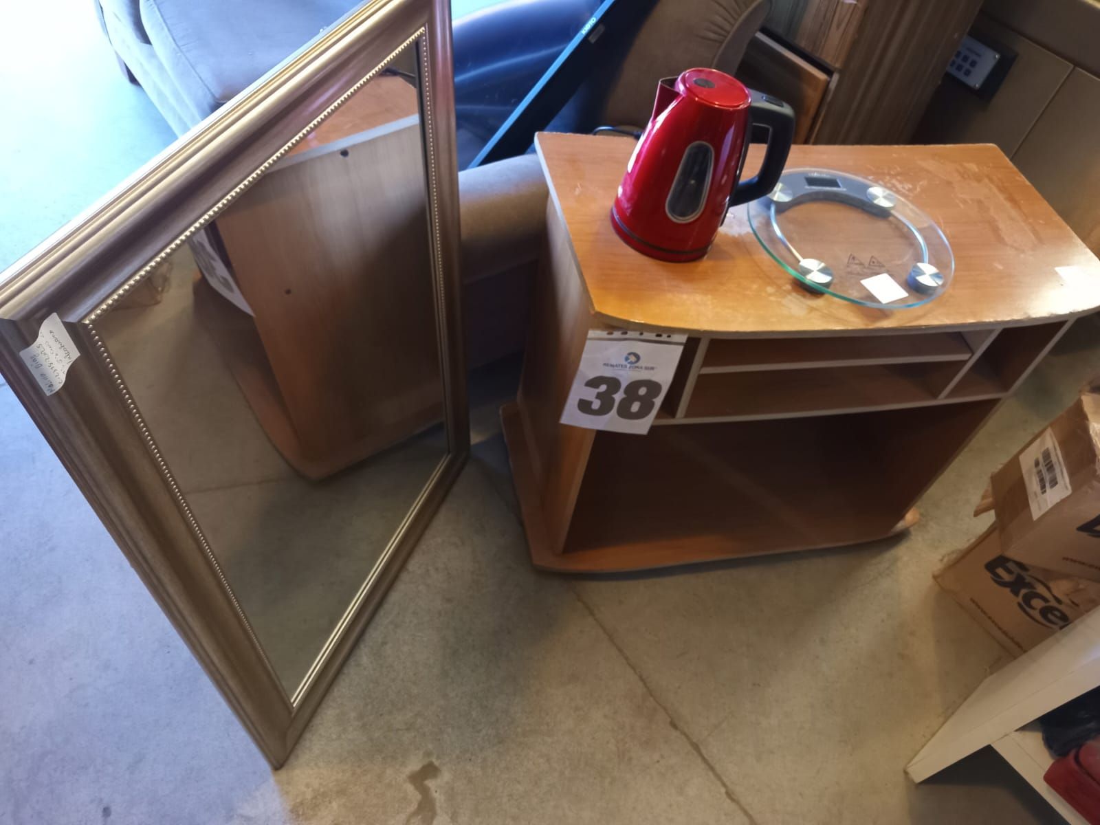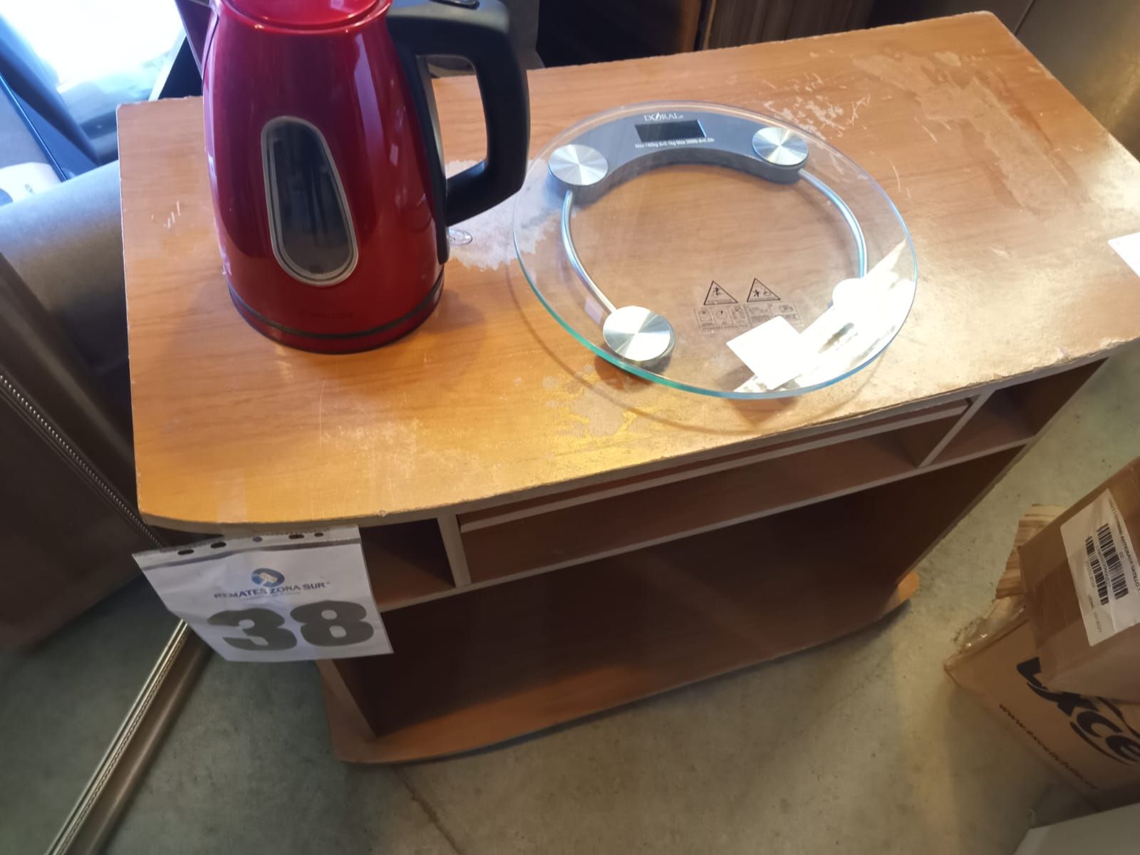 LOTE 38: Hervidor eléctrico Recco. Espejo grande. Escritorio café de melamina. (Retiro En Sede Rzs)