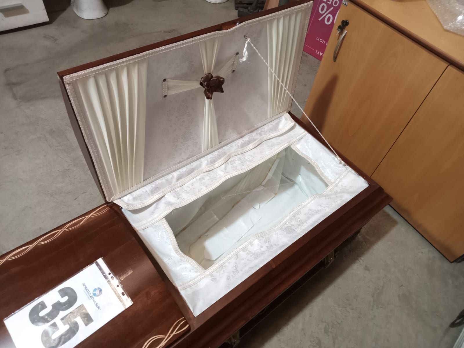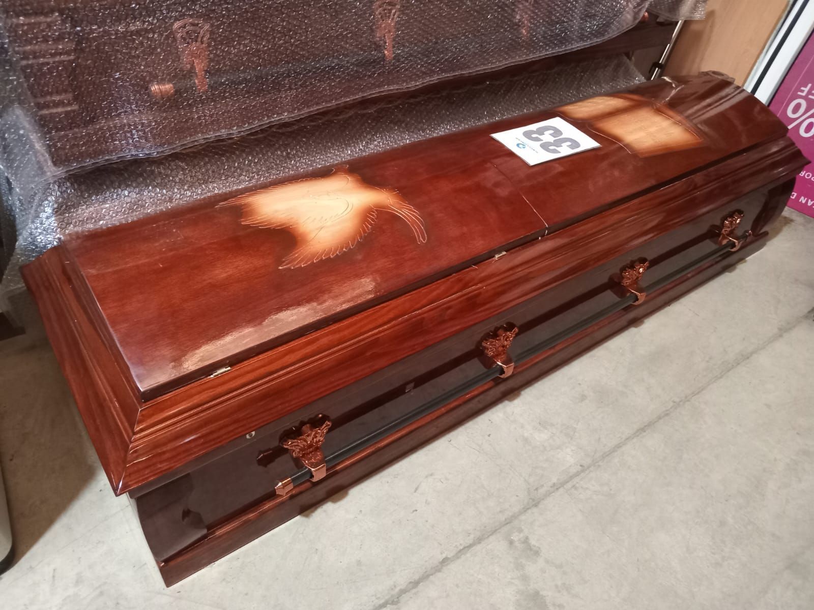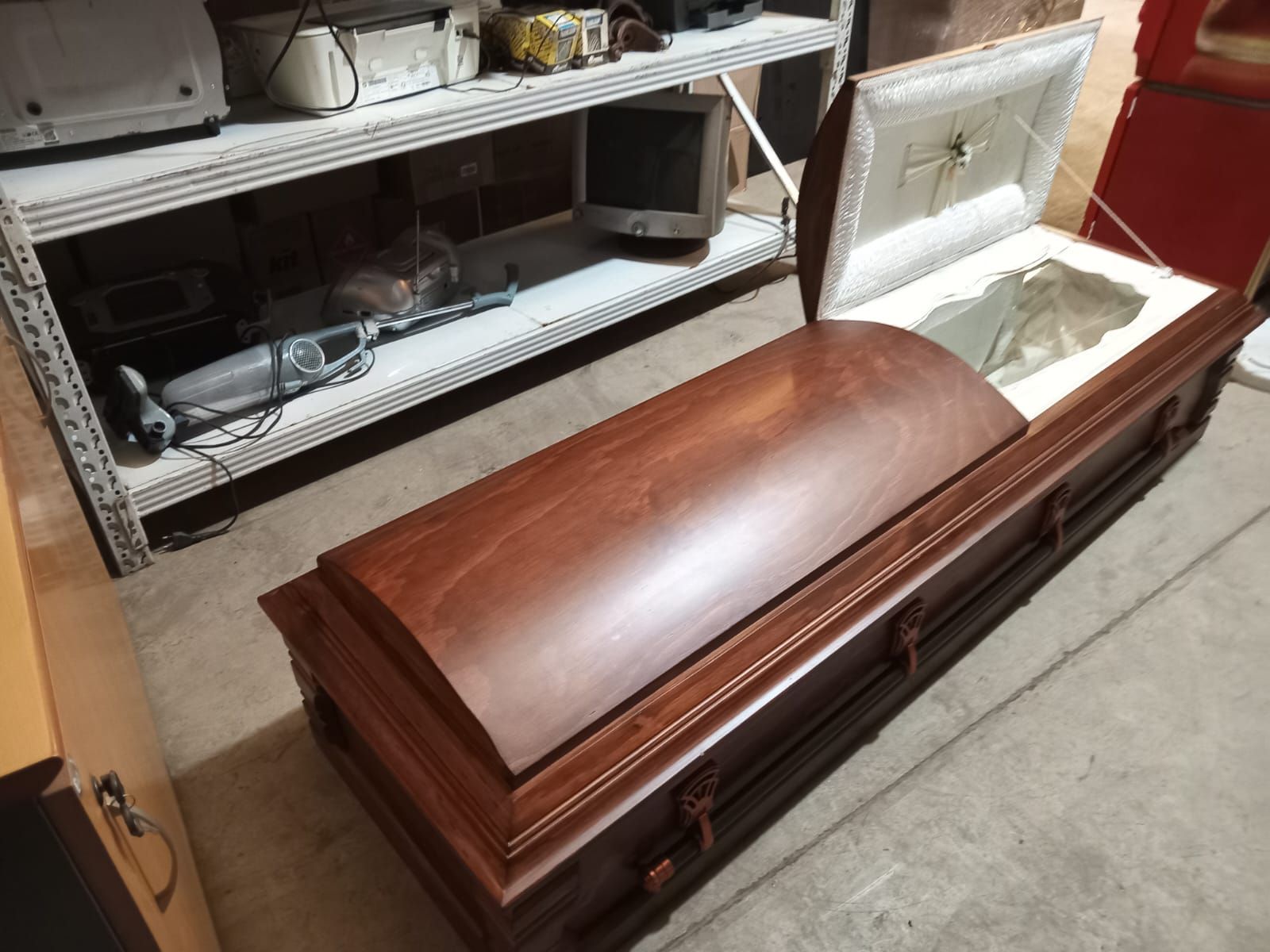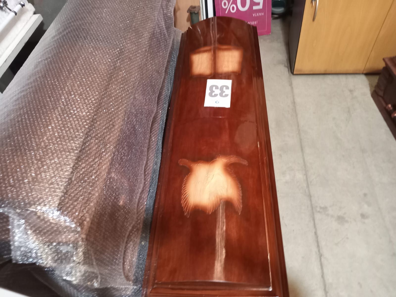 LOTE 38: Hervidor eléctrico Recco. Espejo grande. Escritorio café de melamina. (Retiro En Sede Rzs)