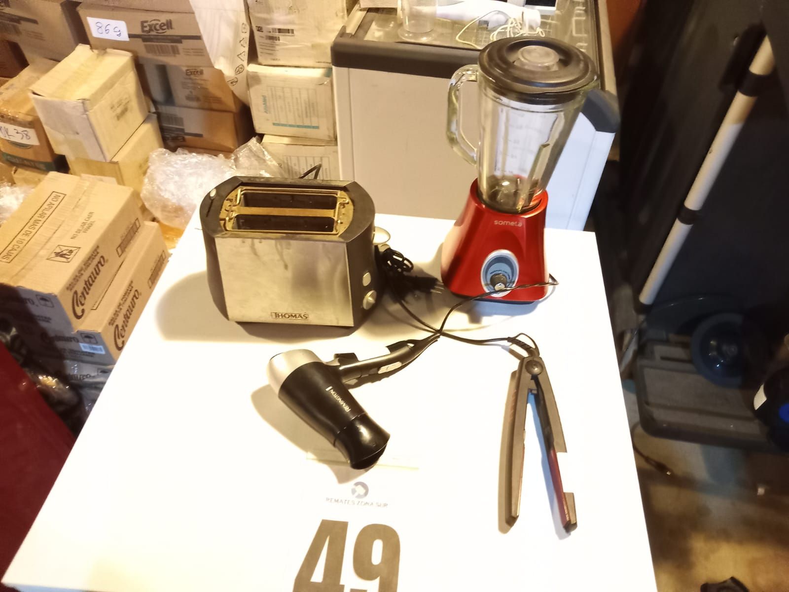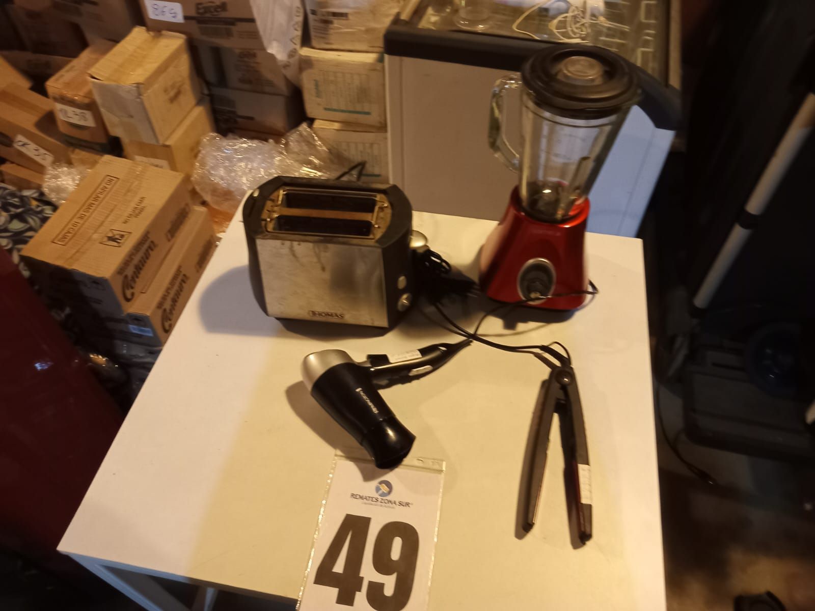 LOTE 49: Tostadora electrica Thomas. Juguera Vaso de vidrio Somela. Secador de pelo Remington. Plancha de pelo Gama.