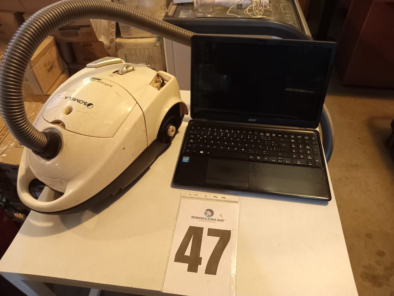 LOTE 47: Aspiradora, marca Somela. Notebook, Acer. Notebook, Sony. Notebook, marca Acer.