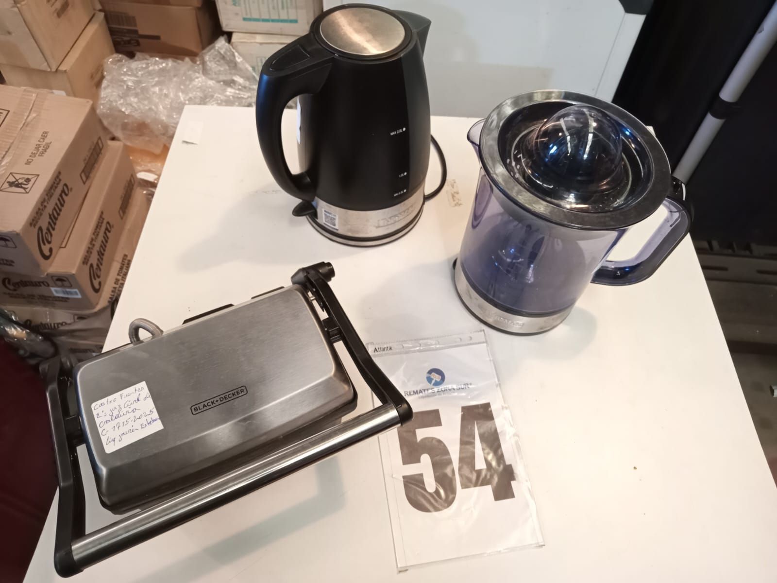 LOTE 54: Hervidor de agua Thomas. Exprimidor de jugo Thomas. Sanguchera Black and Decker. (Retiro En Sede Rzs)