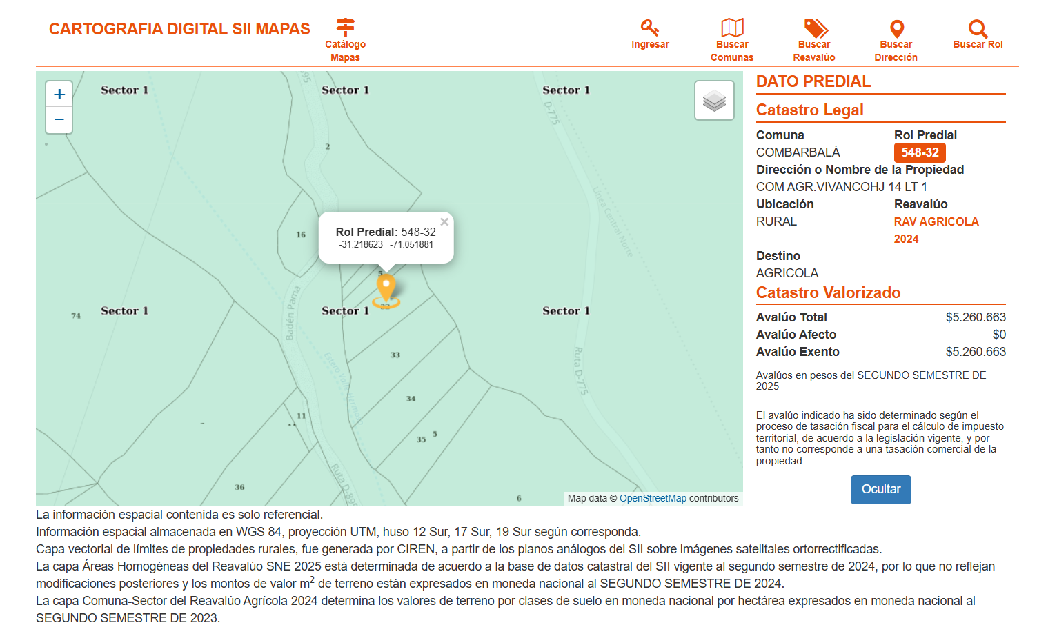 Terreno ubicado en Comunidad Agrícola Vivanco, Hijuela 14, Lote 1, comuna de Combarbalá. El inmueble se encuentra inscrito a fojas 213 número 259 correspondiente al Registro de Propiedad del año 2017 del Conservador de Bienes Raíces de Combarbalá. Rol de avalúo fiscal 548-32 de la comuna de Combarbalá..