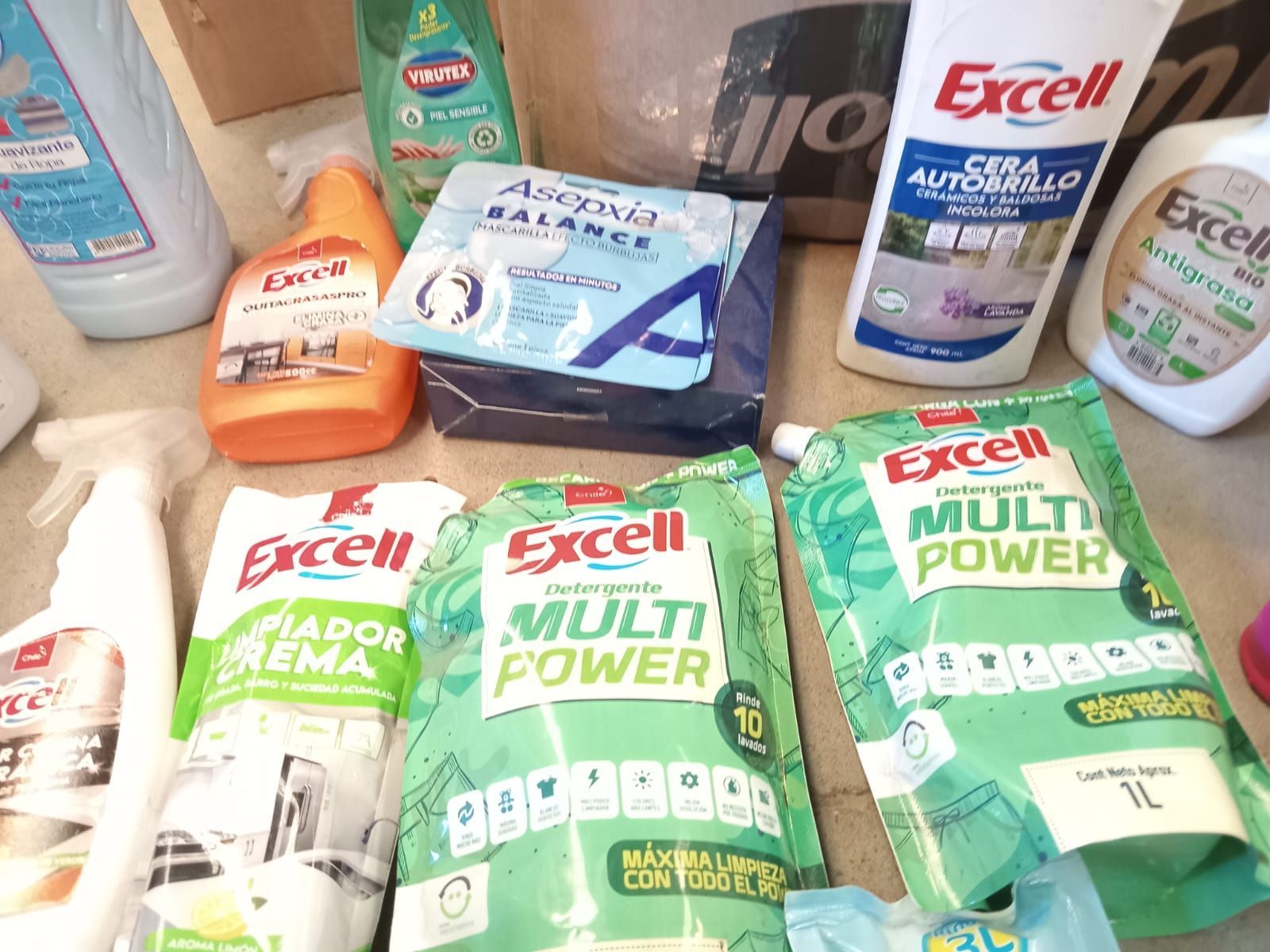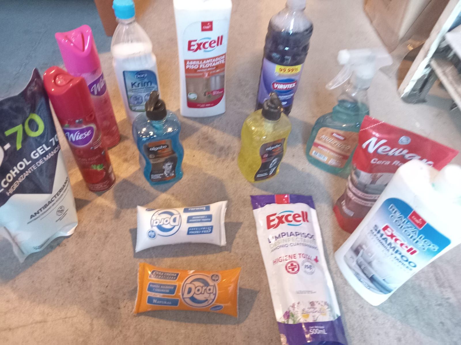 06 SACOS DE DETERGENTE BRIGHT 2,5 KG FLORES SILVESTRE (36UN) + 06 SACOS DE DETERGENTE BRIGHT 2,5 KG AIRES DE MONTAÑA (36UN) + 07 SACOS DE DETERGENTE BRIGHT 2,5 KG BRISAS DEL CAMPO (42UN) + 30UN DE LIMPIADOR PISO FLOTANTE VIRGINIA FRUTOS ROJOS 900 ML + 21 cajas Y 25 unid DE SUAVIZANTE DORA 2LTS (214UN) + 62UN DETERGENTE MULTIPOWER EXCELL 1 LTS + 41UN DE LIMPIADOR DE COCINA VITROCERAMICA 500 ML C/GATILLO + CERA LIQUIDA AUTOBRILLO VIRGINIA ROJA 900 ML + 04 ANTIGRASA EXCELL BIO 500 CC + 46UN SUAVIZANTE EXCELL PARA DILUIR D/P 500 CC + 24UN DE ACONDICIONADOR KIDS 350 ML SANDIA DULCE + 12UN QUITAGRASA PRO EXCELL 500 CC + 11 CAJAS DE TOALLA INTERFOLIADA REGIO H/S X 8 PQTE (88UN) + 20UN DE DETERGENTE LIQUIDO ABY ACTIVE SCENT 3 LTS + 125UN DE LIMPIADOR EN CREMA EXCELL D/P 450 ML + 30UN DE LUSTRAMUEBLE EXEL 500 CC + 13UN ABRILLANTADOR PIEDRA PIZARRA INCOLORA EXEL + 06UN DE ABRILLANTADOR PISO FLOTANTE CHOCOLATE 900 ML + 02 CERA AUTO BRILLO INCOLORA 900 ML + 10 AROMATIZANTE TELA VAIS BRISA SUAVE 500 ML + 09 AROMATIZANTE TELA VAIS CALIDA PRIMAVERA 500 ML + 21UN DE CERA CREMA INCOLORA VIRGINIA 340 ML + 03UN LAVALOZA ABY 500 ML + 12UN CERA AUTO BRILLO INCOLORA 900 ML EXCEL + 06UN ANTIEMPAÑANTE MULTIUSO EXCEL + 20UN DE LIMPIA VIDRIOS ABY GATILLO 500 ML + 56UN DE MASCARILLA FACIAL ASEPXIA BALANCE + 10PAQTE DE TRAPERO C/OJAL MULTIUSO VIRUTEX 40X60 LAVANDA DESECHABLE + 05 PQTE DE TRAPERO HUMEDO DESINFECTANTE IGENIX DESECHABLE + 02 PQTE DE TOALLAS MULTIUSO DESINFECTANTE HUMEDA + LIMPIADOR PISO FLOTANTE MAXIMA PROTECCION EXCEL 900 ML LAVANDA + CERA EXCEL PINTURA ROJA AUTOBRILLO 900 ML LAVANDA + 02 LIMPIADOR PISO FLOTANTE FRUTOS DEL BOSQUE 900 ML EXEL + CERA AUTOBRILLO ROJA 900 ML LAVANDA EXEL + 02 LIMPIA PISO EXEL 900 CC AROMA PRIMAVERA + 11UN LUSTRA MUEBLES CREMA 500 CC AROMA MANDARINA + 32 BOLSAS DE MAGOPADS C/JABON MANLAC 2 UNID + IMPRESORA BROTHER HL-1202 LASER BYN + IMPRESORA MI+ULTIFUNCIONAL HP SMART TANK 500 + 19UN DE LAVALOZAS VIRUTEX PIEL SENCIBLE 500 ML + 19 BLOQUEADOR SOLAR LEBLON FBS 50 90 GRS + 02 ALCOHOL GEL VIDA BELL + 07UN REMOVEDOR DE MANCHAS BE WINNEX POTE + 02 DETERGENTE BRIGHT 800 GR AIRES DE MONTAÑA + DETERGENTE BRIGHT 800 GRS FLORES SILVESTRE + 17 TIRAS DE MAGO PADS CON JABON BRITER (102UN) + 15un ABRILLANTADOR PISO FLOTANTE LAVANDA 900 ML + 30 PQTE PERROS DE ROPA MADERA BAMBU PQTE.