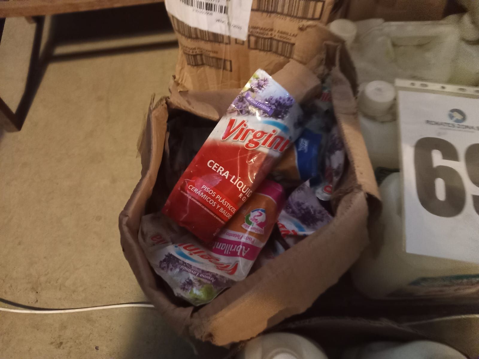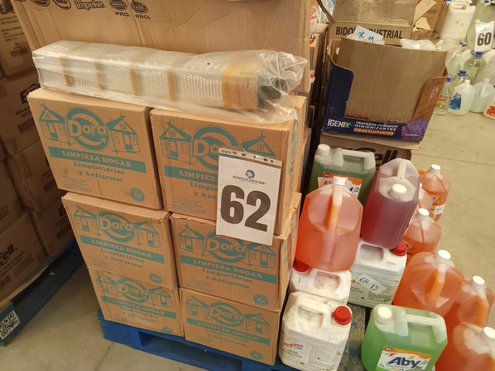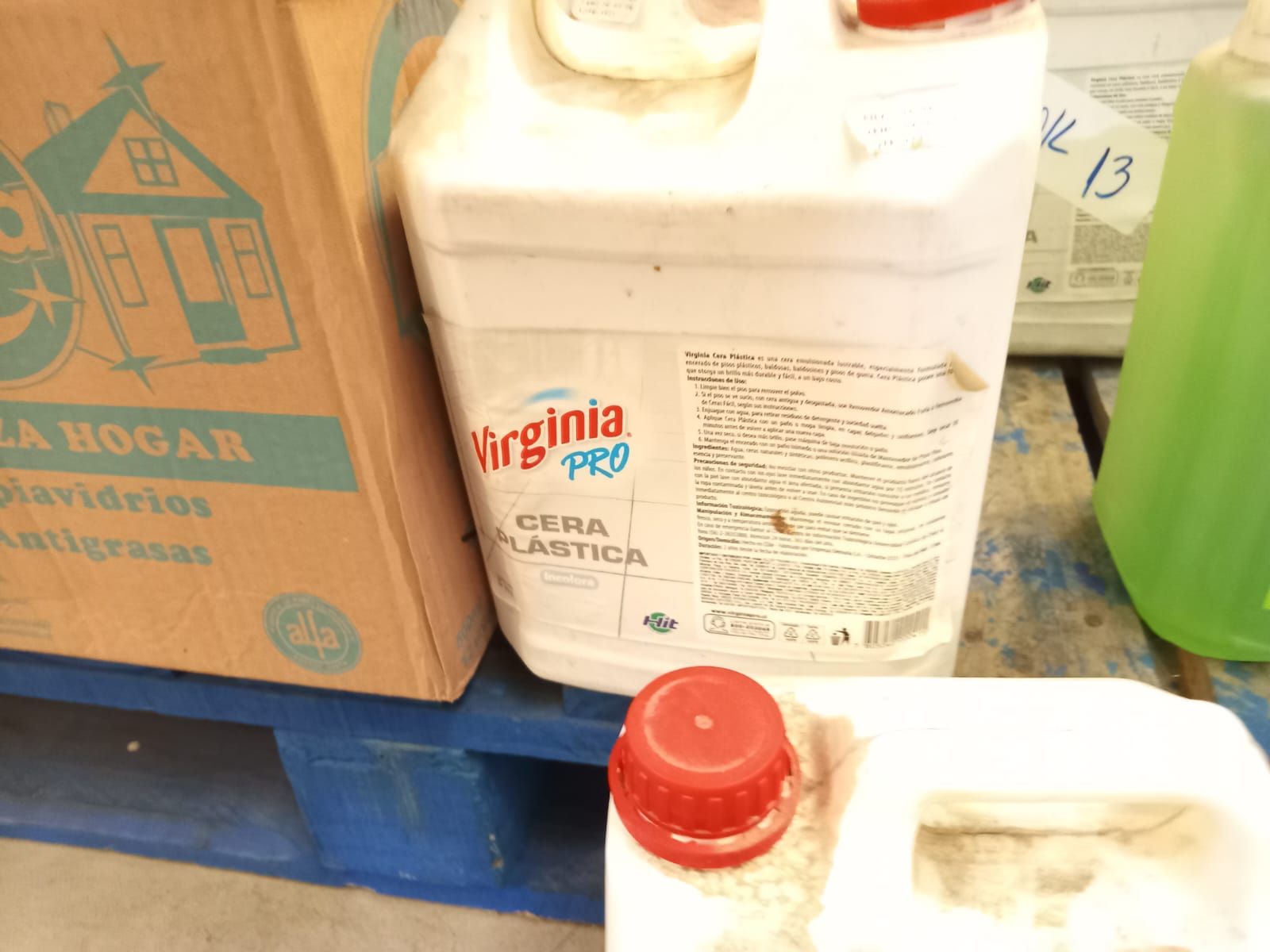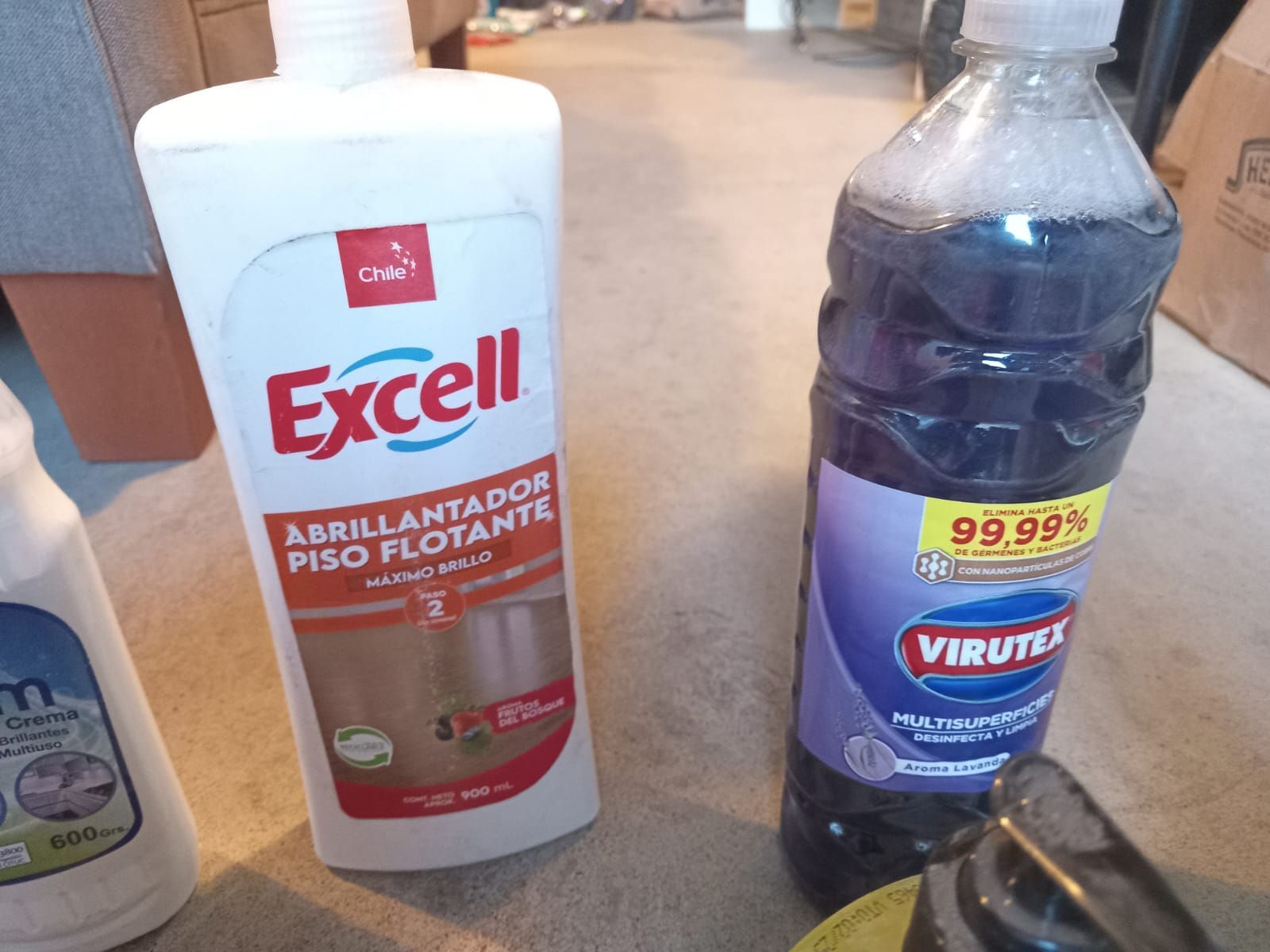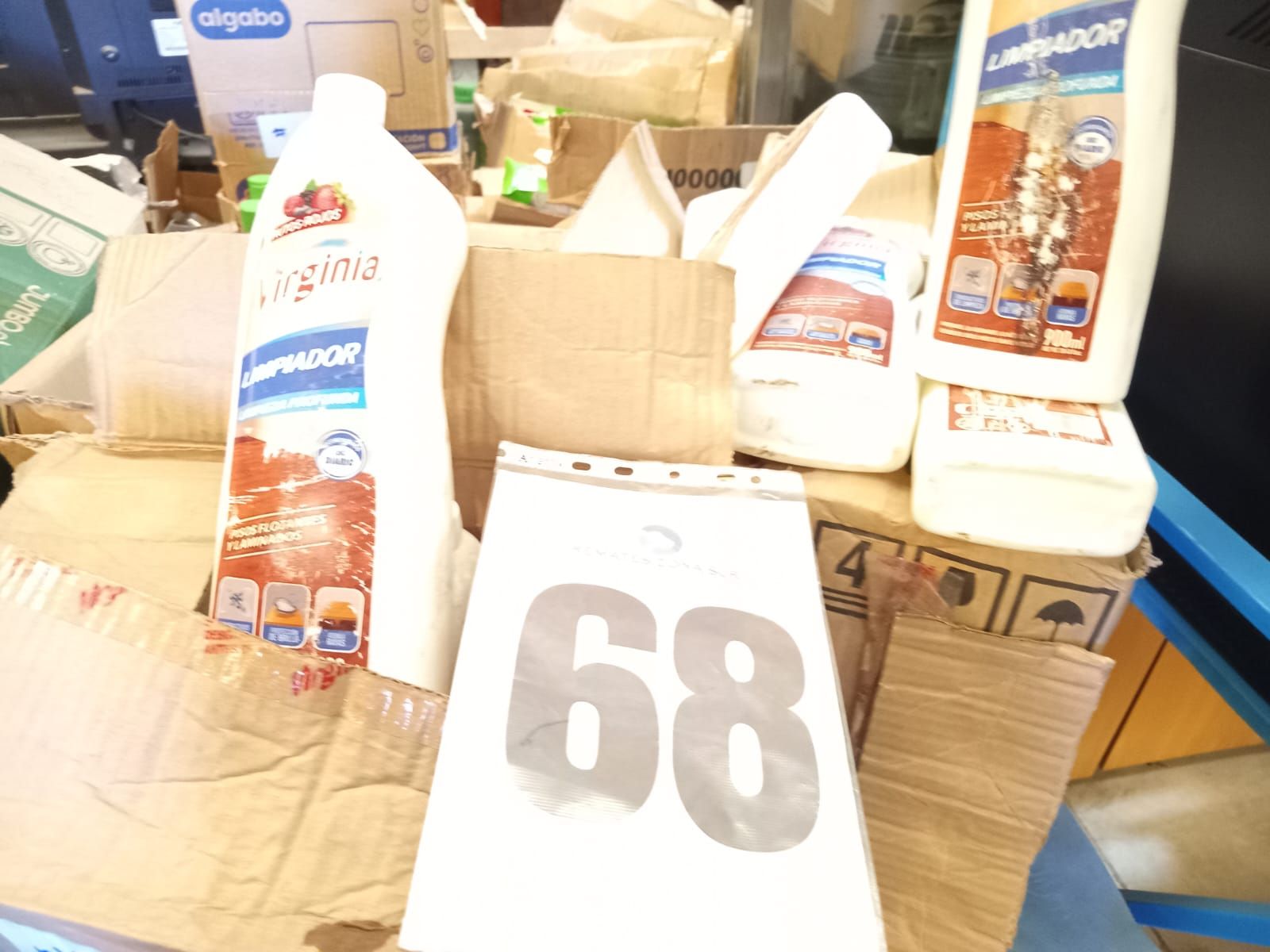 LOTE 69: 21UN LIMPIADOR PISO FLOTANTE VIRGINIA LAVANDA 900 ML + 33UN LAVAVAJILLA BIO EXCELL 2 LTS + 13 CERA LIQUIDA ROJA VIRGINIA 900 ML LAVANDA + 07 CERA LIQUIDA AUTOBRILLO VIRGINIA INCOLORA LAVANDA 400 ML + 07UN CERA LIQUIDA AUTOBRILLO VIRGINIA ROJA LAVANDA 400 ML + LIMPIADOR PISO FLOTANTE VIRGINIA LAVANDA 400 ML + ABRILLANTADOR PISO FLOTANTE VIRGINIA LAVANDA 400 ML + 24UN GEL CAPILAR ALGABO EFECTO EXTRA FUERTE FRASCO 500 GRS + 24UN GEL CAPILAR ALGABO EFECTO HUMEDO FRASCO 500 GRS + 12 CAJAS DE LIMPIADOR EN CREMA DORA KRIM 600 GR (108UN) + 02 UN DE LIMPIA PISO EXEL 900 CC AROMA LAVANDA + 09UN DE SHAMPOO ALFOMBRA Y TAPICES EXEL 900 CC + ABRILLANTADOR PISO FLOTANTE FRUTOS DEL BIOSQUE 900 ML + 43UN DE ALCOHOL GEL 70% ANTIBACTERIANO D70 900 ML + 12UN LIMPIADOR LIQUIDO SUPERFICIE 500 ML MANLAC + 11UN DESODORANTE AMBIENTAL WEISSE 226 GR FLORAL PARADICE + 03UN DE DESODORANTE AMBIENTAL WEISSE 226 GR FRUTOS ROJOS + 19UN DE LIMPIA PISO EXEL 500 ML AROMA C/ AMONIO + 28UN REMOVEDOR DE SARRO EXEL + 216UN DE CERA EN PAN DORA 340 CC INCOLORA + 24UN DE CERA EN PAN DORA 340 CC ROJA + 24UN CERA EN PAN DORA 340 CC NATURAL + 09UN SUAVIZANTE AGUACOL 5 LTS + 02 BIDONES DE RENOVADOR DE GOMA AGUACOL 5 LTS + 02 BOLSAS DE CERA ROJA DORA 360 ML.