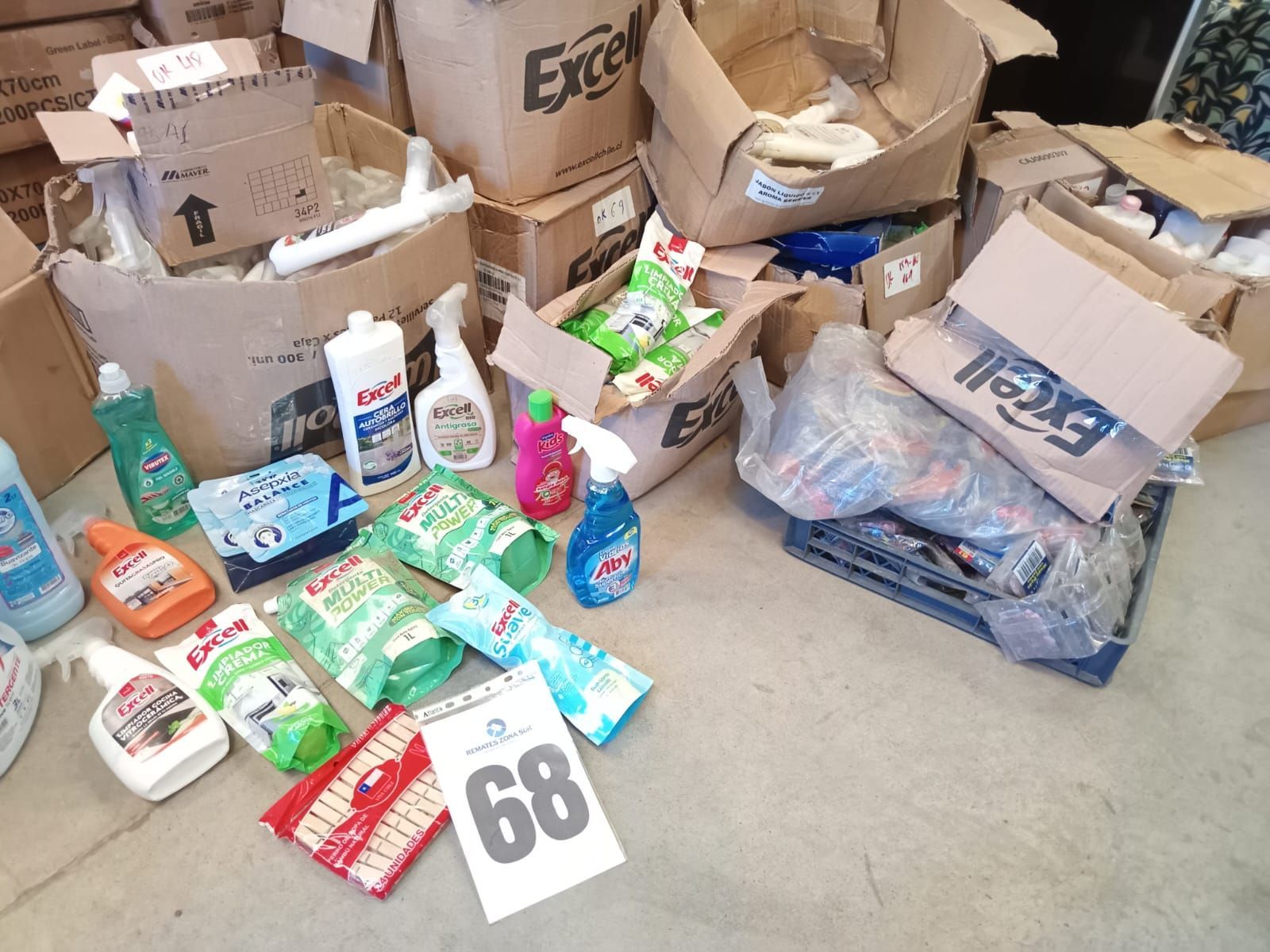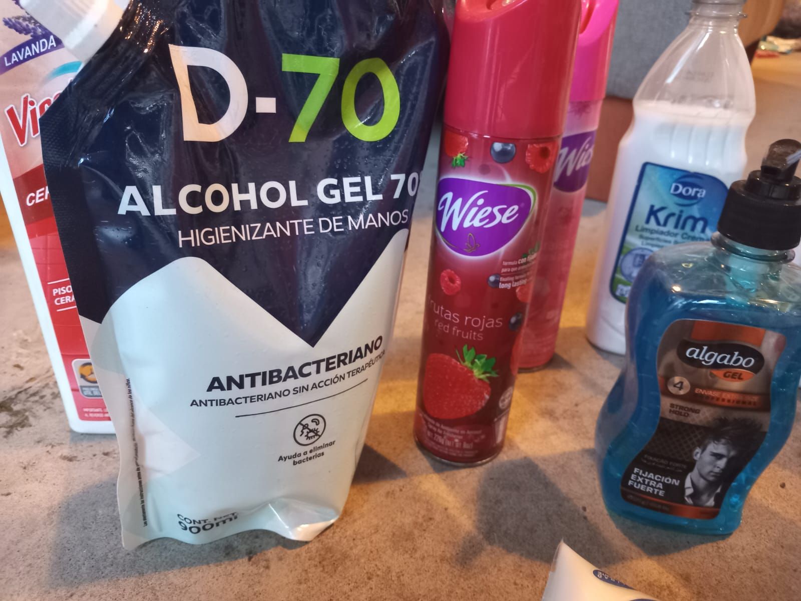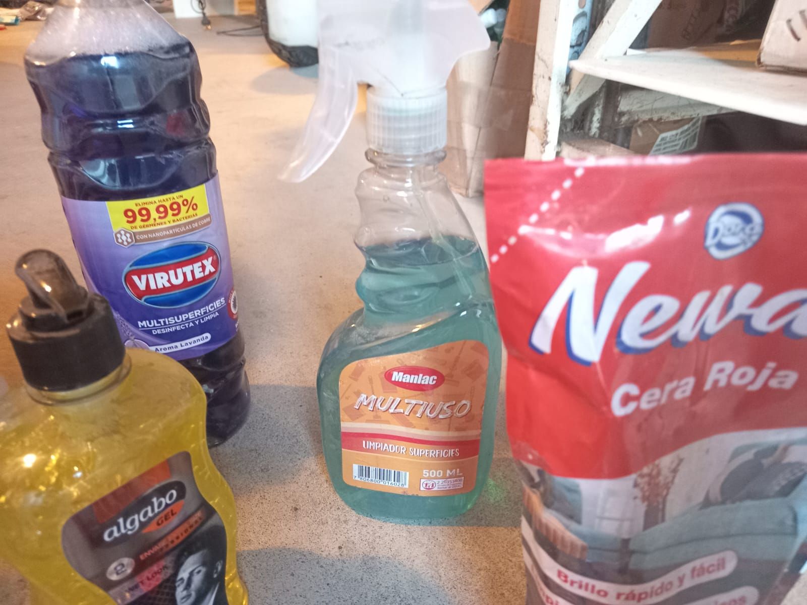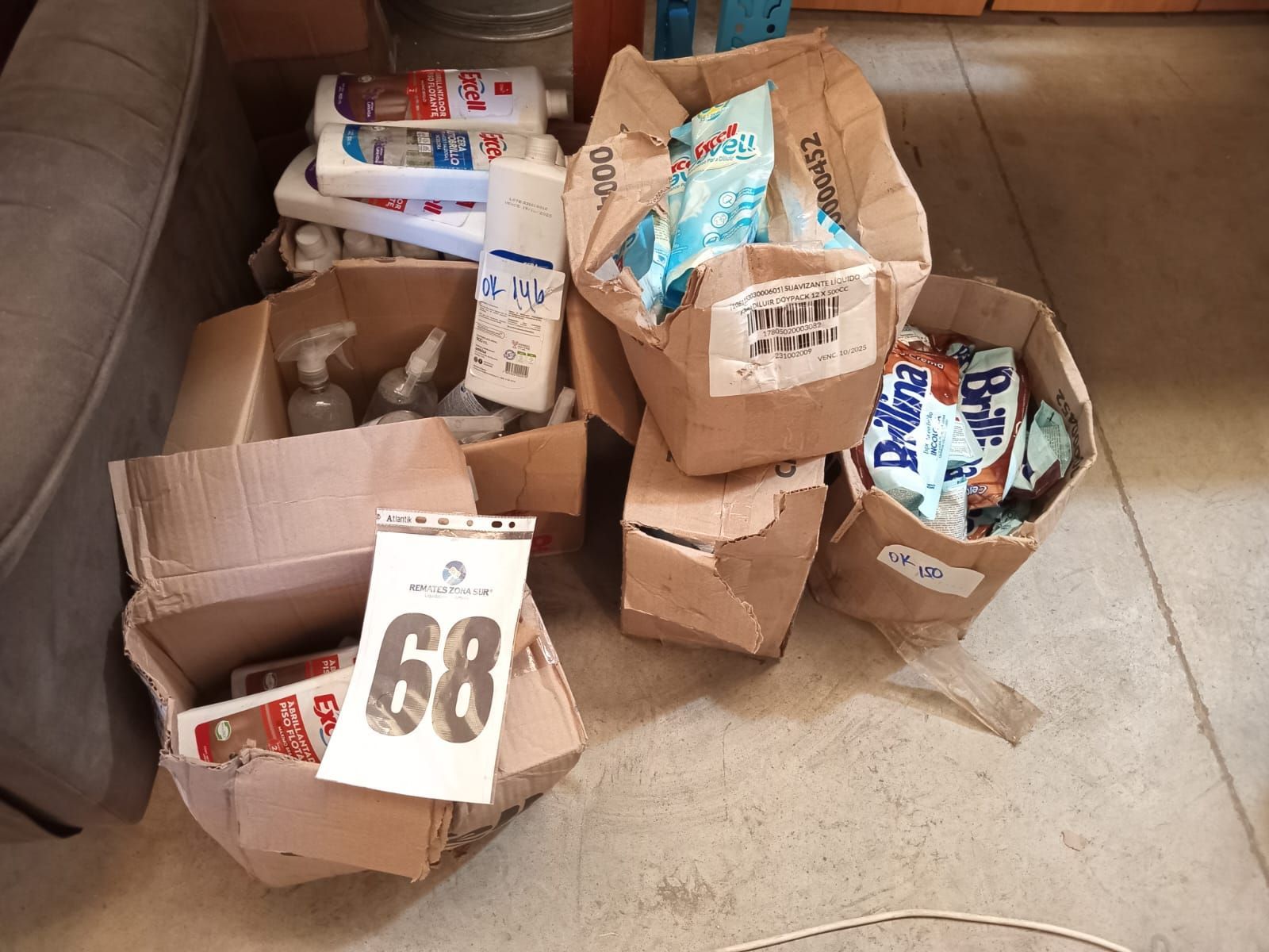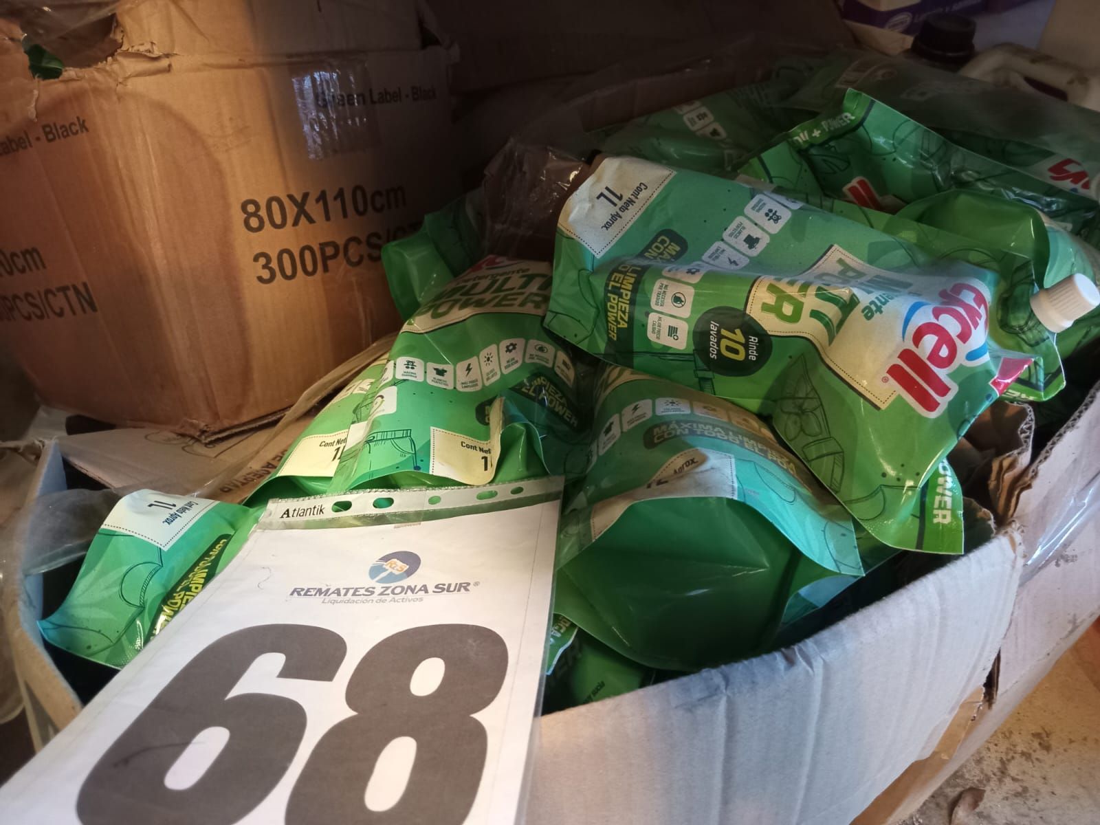 LOTE 69: 21UN LIMPIADOR PISO FLOTANTE VIRGINIA LAVANDA 900 ML + 33UN LAVAVAJILLA BIO EXCELL 2 LTS + 13 CERA LIQUIDA ROJA VIRGINIA 900 ML LAVANDA + 07 CERA LIQUIDA AUTOBRILLO VIRGINIA INCOLORA LAVANDA 400 ML + 07UN CERA LIQUIDA AUTOBRILLO VIRGINIA ROJA LAVANDA 400 ML + LIMPIADOR PISO FLOTANTE VIRGINIA LAVANDA 400 ML + ABRILLANTADOR PISO FLOTANTE VIRGINIA LAVANDA 400 ML + 24UN GEL CAPILAR ALGABO EFECTO EXTRA FUERTE FRASCO 500 GRS + 24UN GEL CAPILAR ALGABO EFECTO HUMEDO FRASCO 500 GRS + 12 CAJAS DE LIMPIADOR EN CREMA DORA KRIM 600 GR (108UN) + 02 UN DE LIMPIA PISO EXEL 900 CC AROMA LAVANDA + 09UN DE SHAMPOO ALFOMBRA Y TAPICES EXEL 900 CC + ABRILLANTADOR PISO FLOTANTE FRUTOS DEL BIOSQUE 900 ML + 43UN DE ALCOHOL GEL 70% ANTIBACTERIANO D70 900 ML + 12UN LIMPIADOR LIQUIDO SUPERFICIE 500 ML MANLAC + 11UN DESODORANTE AMBIENTAL WEISSE 226 GR FLORAL PARADICE + 03UN DE DESODORANTE AMBIENTAL WEISSE 226 GR FRUTOS ROJOS + 19UN DE LIMPIA PISO EXEL 500 ML AROMA C/ AMONIO + 28UN REMOVEDOR DE SARRO EXEL + 216UN DE CERA EN PAN DORA 340 CC INCOLORA + 24UN DE CERA EN PAN DORA 340 CC ROJA + 24UN CERA EN PAN DORA 340 CC NATURAL + 09UN SUAVIZANTE AGUACOL 5 LTS + 02 BIDONES DE RENOVADOR DE GOMA AGUACOL 5 LTS + 02 BOLSAS DE CERA ROJA DORA 360 ML.