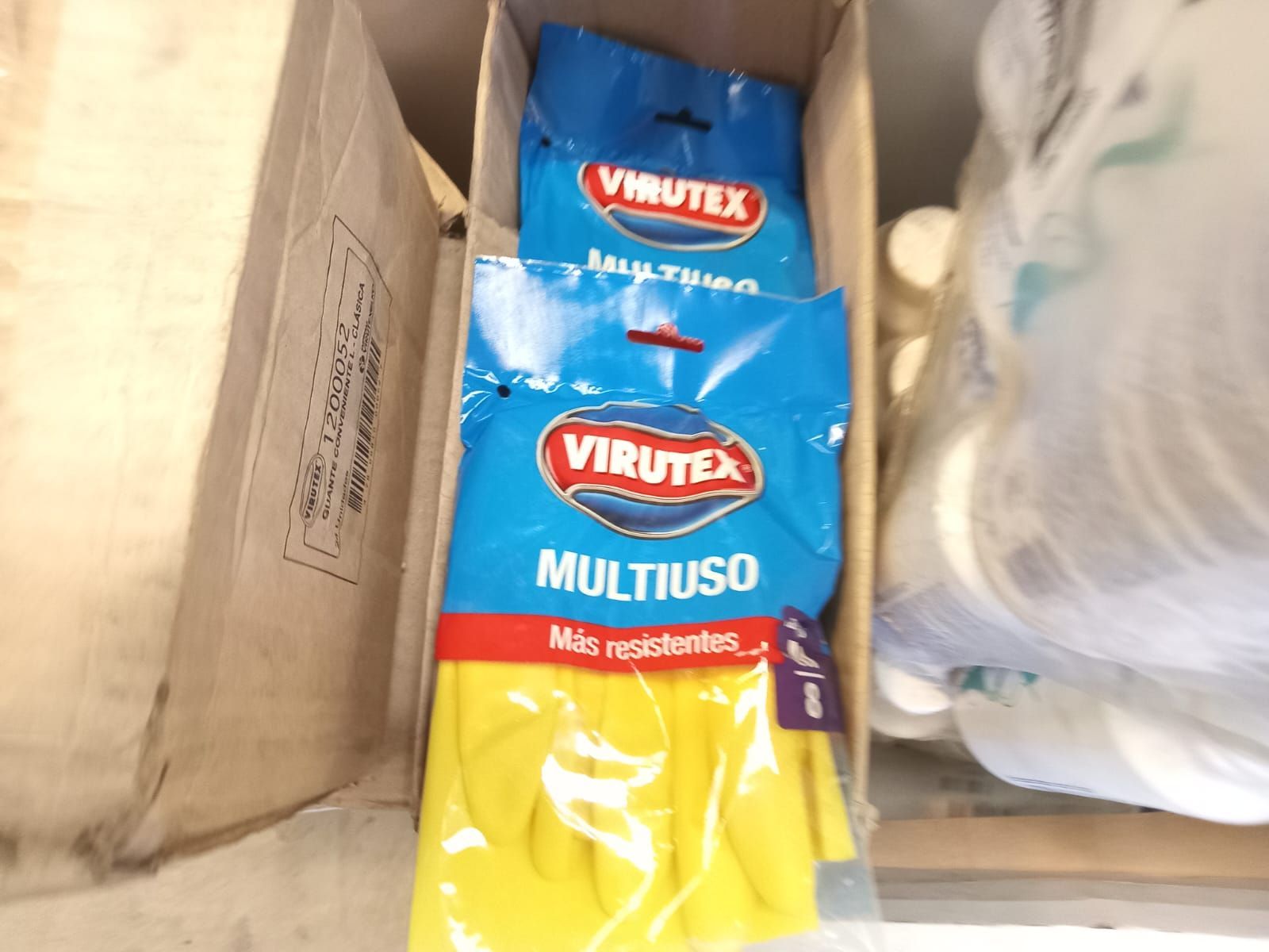LOTE 61: 07 CAJAS DE GUANTE CONVENIENTE (MULTIUSO VIRUTEX T/S (168UN) + 03 CAJAS DE GUANTE MULTIUSO VIRUTEX T/S (72UN) + 01 CAJA DE GUANTE MULTIUSO VIRUTEX T/M (12UN) + 01 CAJA DE GUANTE MULTIUSO VIRUTEX T/L (24UN) + 04 CAJAS DE LAT NEGROS INTENSOS (48UN) + 10 PAQTE DE TALCO BEBE ALGABO 200 ML (120UN) + 04 CAJAS DE GUANTE BRILLEC T/L (432UN) + 02 CAJAS DE GUANTE CONVENIENTE VIRUTEX T/L (48UN).