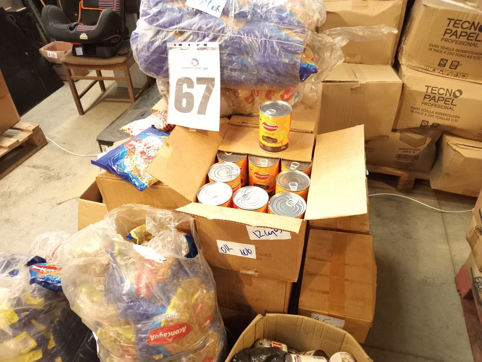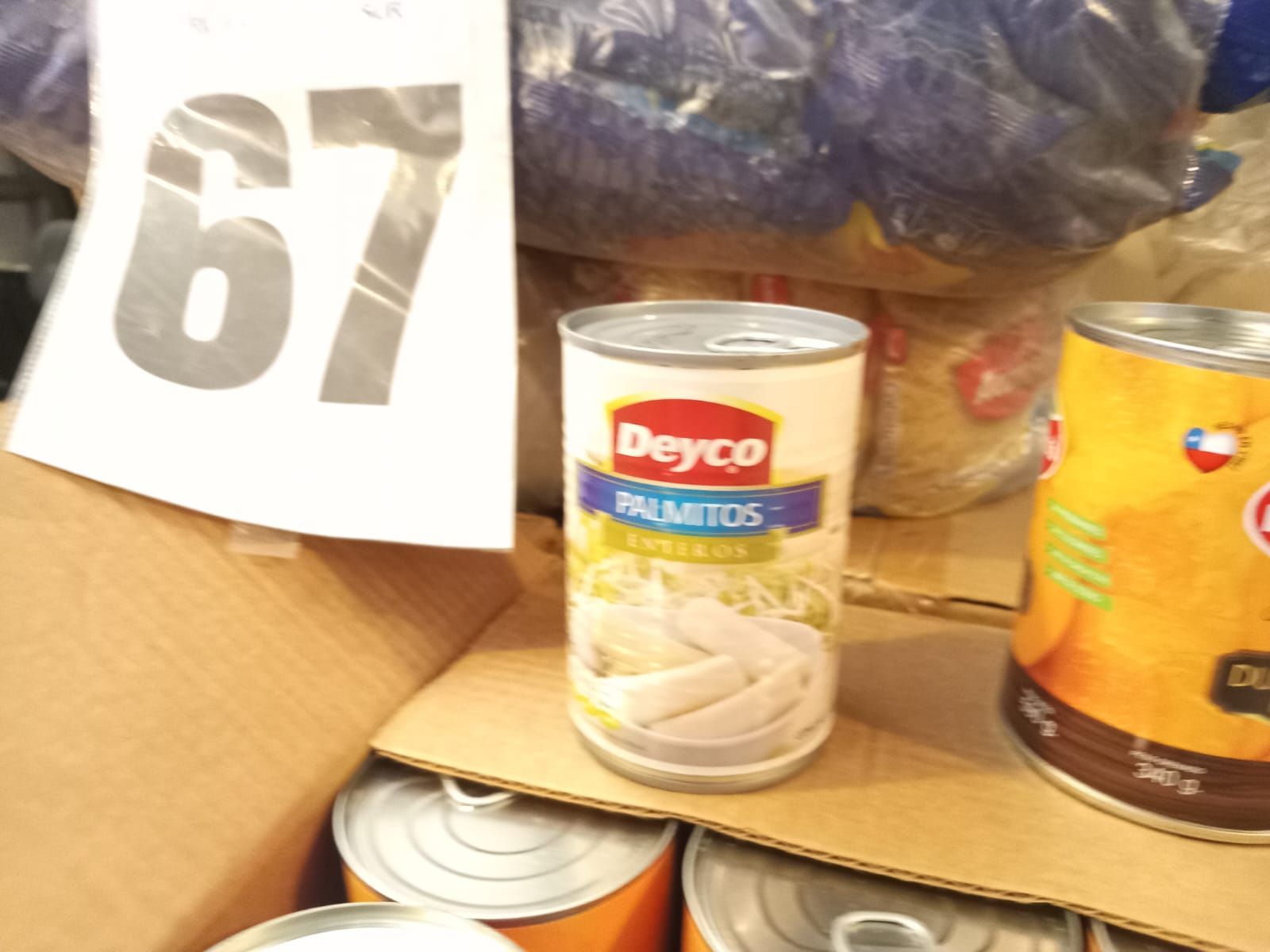 LOTE 67: 08 CAJAS DE DURAZNO TROCITOS 590 GRS BONANZA (192UN) + 04 CAJAS DE SARDINAS EN ACEITE DEYCO 125 GRS (200UN) + 11 LATAS DE SURTIDO CALDILLO + 22 LATAS DE CHORITO AGUA Y ACEITE + 09 LATAS ATUN LOMITO + 02 LATAS DE CALDILLO SURTIDO + 02 BOLSAS DE ESPIRALES ACONCAGUA (60UN) + 1 BOLSA DE CORBATA ACONCAGUA (30UN) + 02 BOLSAS DE CABELLO ANGEL ACONCAGUA (60UN) + 01 BOLSA DE OJO DE DIUCA CAROZZI (48UN) + 01 BOLSA DE GRANIZO CAROZZIV (48UN) + 48 UN ALFABETO CAROZZI.