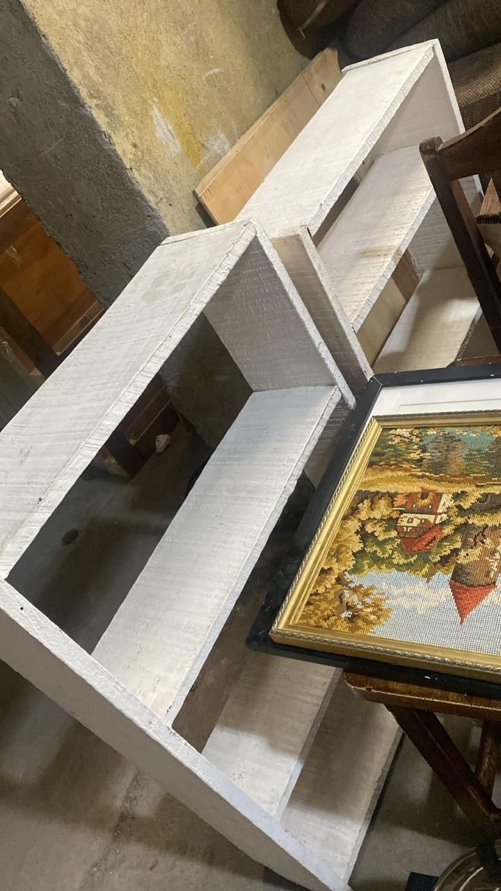 LOTE 76: 02 Cuadro De Colores Decorativos. 02 Estantes De Libros De Color Blanco Con Repisas. 40 Libros De Diferentes Autores Y Contenidos. Lampara Decorativa Color Negro. Lampara Decorativa Color Cobre. Mueble Color Blanco Con 21 Cajones Chicos. 02 Basureros Color Blanco Con Pedestal. Piso Para Posar Los Pies Color Negro. Mesa De Centro De Madera. Sofa En L, Tapiz De Tela De Cuadrille Tonos Cafe. Sofa De 2 Cuerpos Tapiz De Tela Color Cafe. 02 Sofa De 1 Cuerpo Tapiz De Tela Cuadrille Tonos Azules. 02 Sitiales De Terraza De Madera Con Cojines. 02 Pisos De Madera. Buffet Blanco Rectangular Con 6 Espacios. Escultura Blanca Que Representa Una Persona Durmiendo. 15 Libros Decorativos.