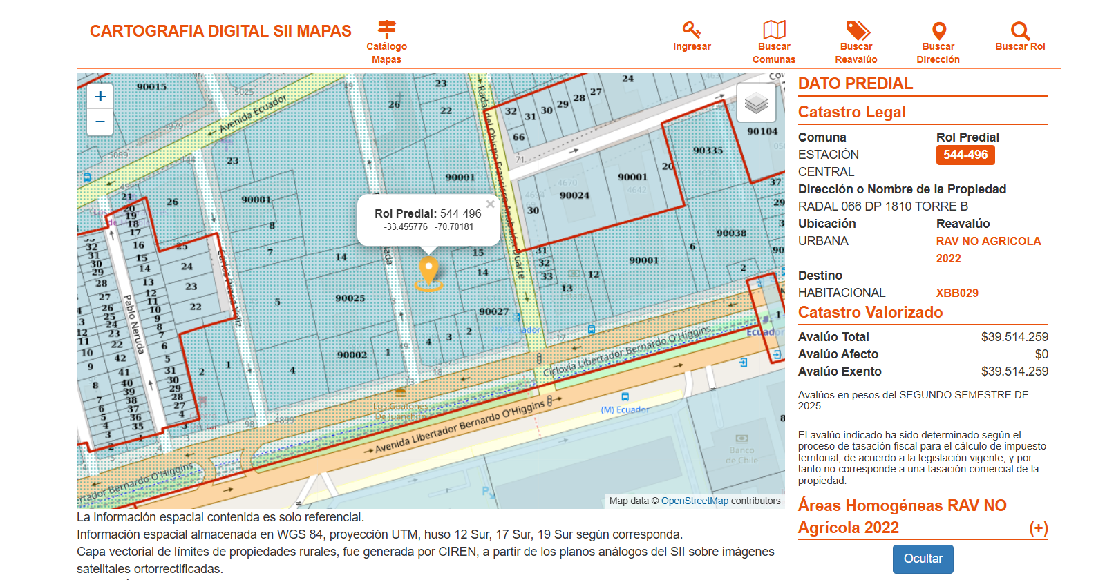 Departamento N° 1810, del piso 18 de la Torre B denominada comercialmente Eco Futuro II B, del "Condominio Eco Futuro II A y B", con acceso por calle Radal N° 066, comuna de Estación Central, Región Metropolitana. El inmueble se encuentra inscrito a fojas 35302 número 51265 correspondiente al Registro de Propiedad del año 2019 del Conservador de Bienes Raíces de Santiago. Rol de avalúo 544-496 de la comuna de Estación Central. Edificio cuenta con Recepción, Piscina, Gym, Terraza, Área multiuso.