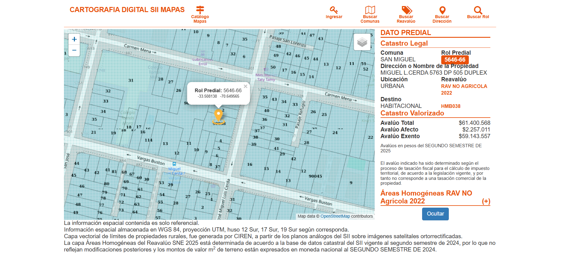 - Departamento Duplex ubicado en calle Miguel Luis Cerda #5763, departamento 505, San Miguel. Inscrita a fojas N° 20597 del año 2017 CBR de San Miguel. Rol 05646-00066 comuna de San Miguel.