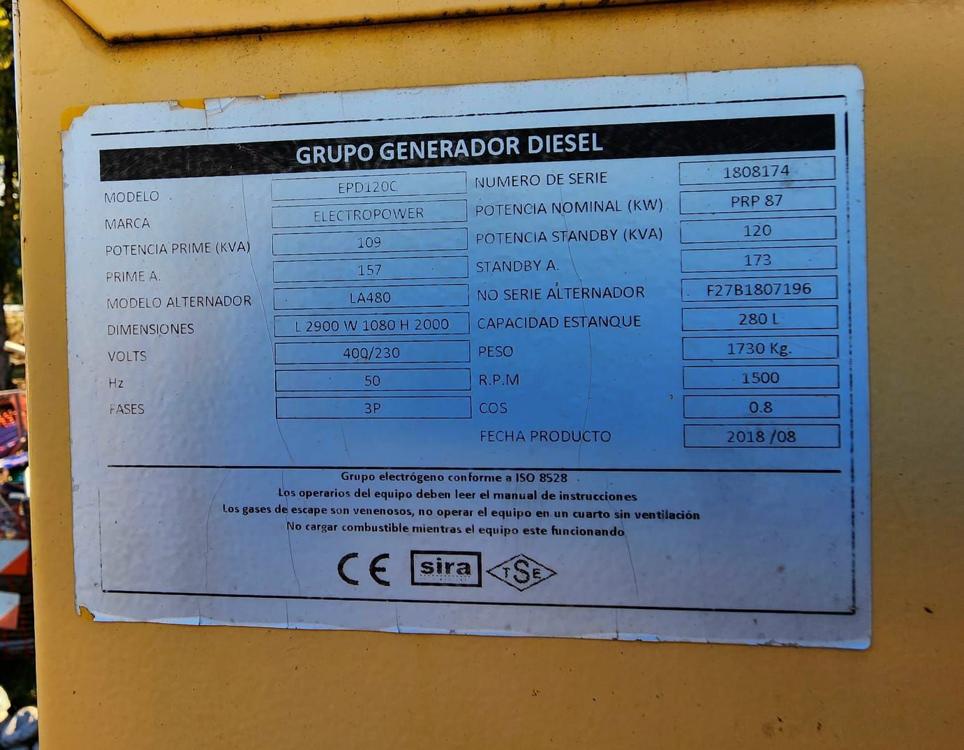 GENERADOR ELECTROPOWER DE 120 KVA AÑO 2018