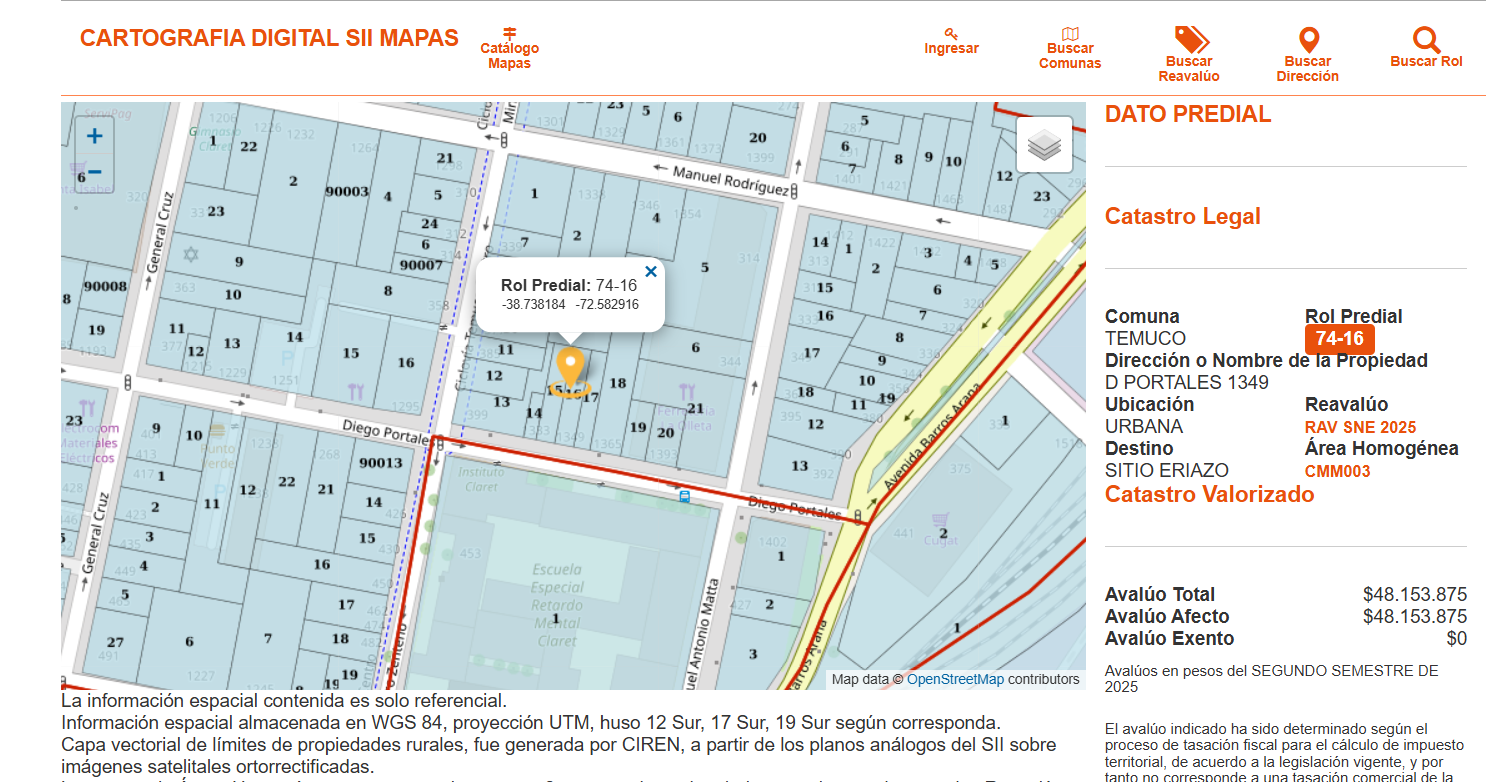 Amplio Terreno en pleno centro de Temuco con acceso por calles Rodriguez y Portales. Son 3 terrenos en total con roles independientes.